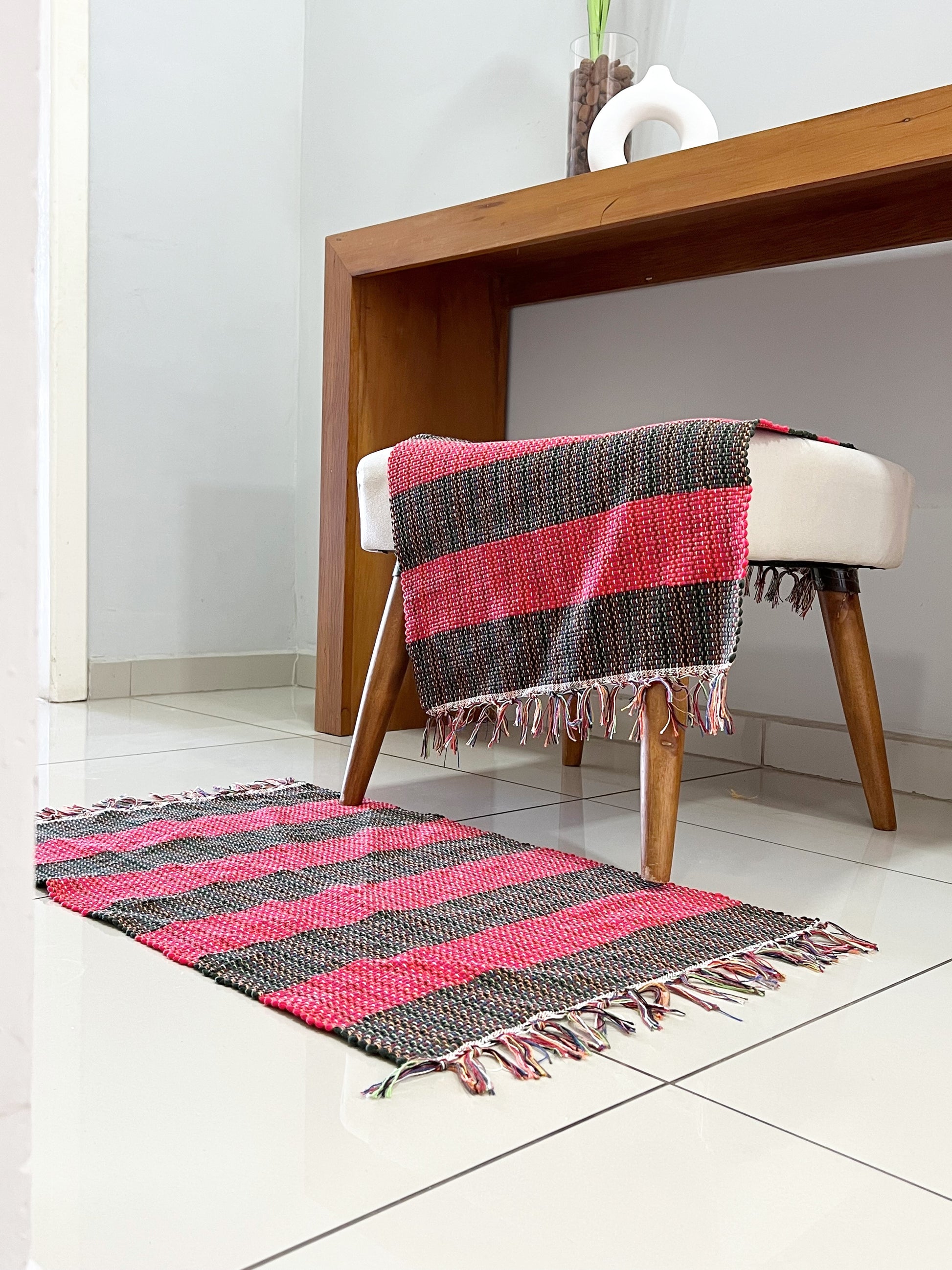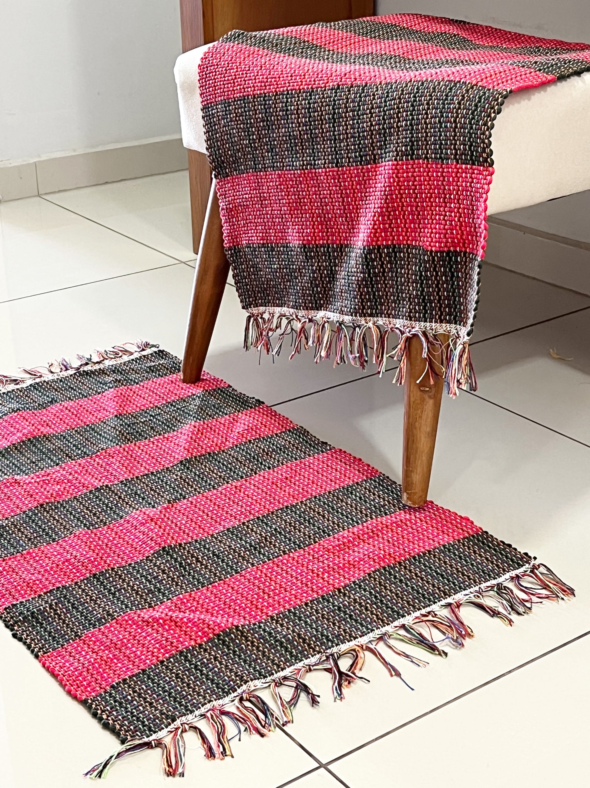 Acabamento com franjas, ótima durabilidade e facilidade na hora de lavar