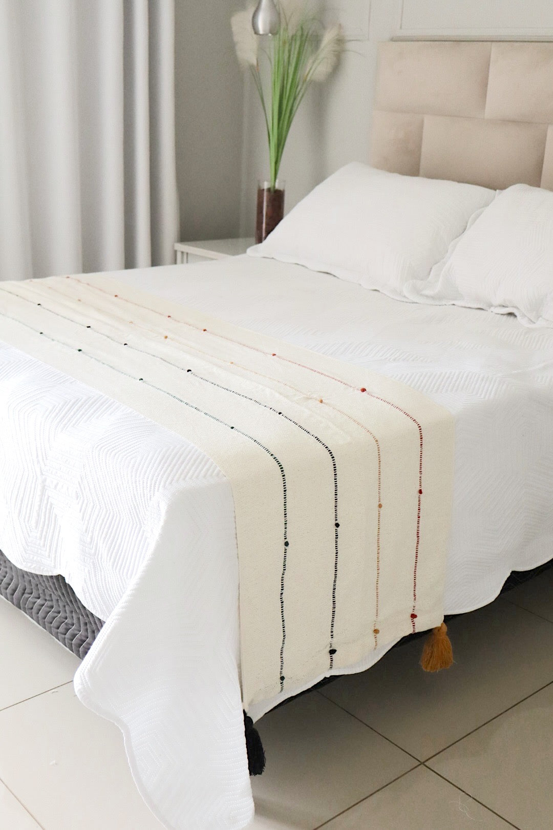Dê um charme na sua cama com a nossa peseira de algodão com pompom.