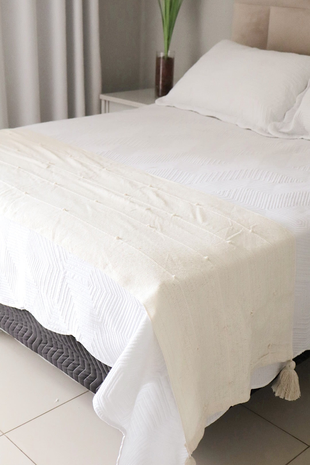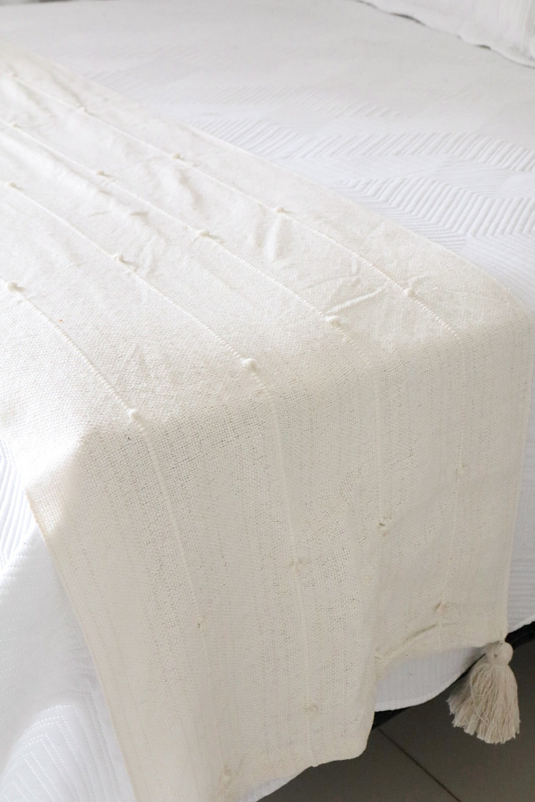 Dê um charme na sua cama com a nossa peseira de algodão com pompom.