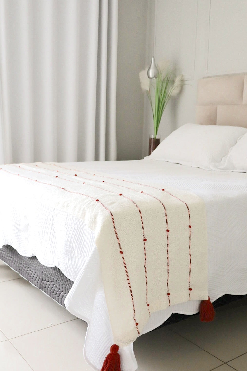 Dê um charme na sua cama com a nossa peseira de algodão com pompom.