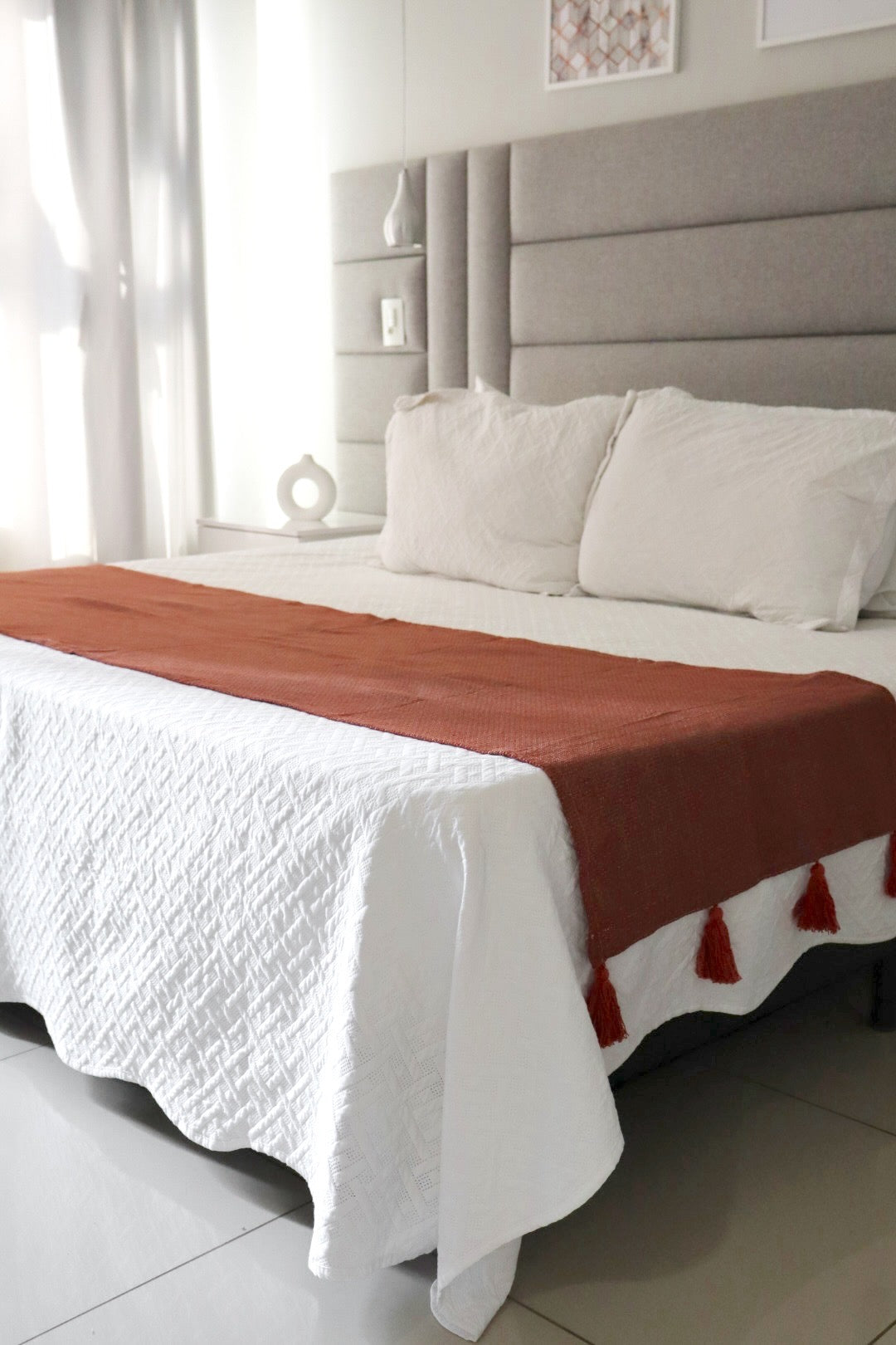 Dê um charme na sua cama com a nossa peseira de algodão com pompom.