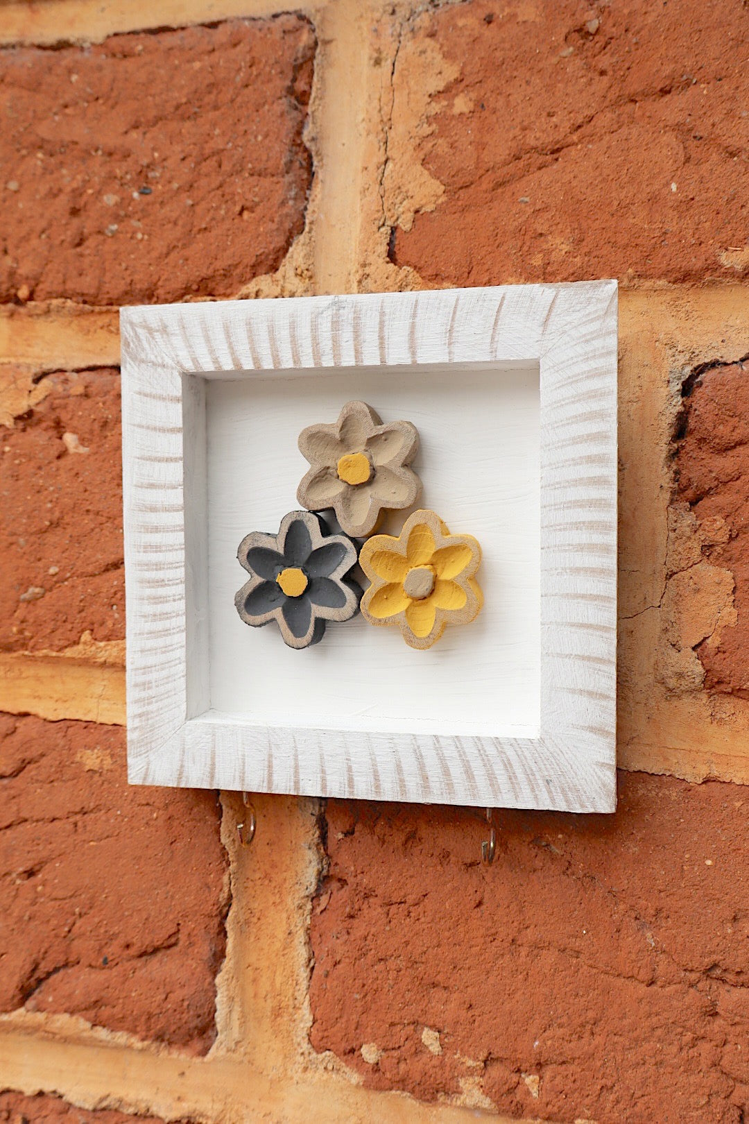 Porta Chaves Madeira Moldura Flores Neutras
