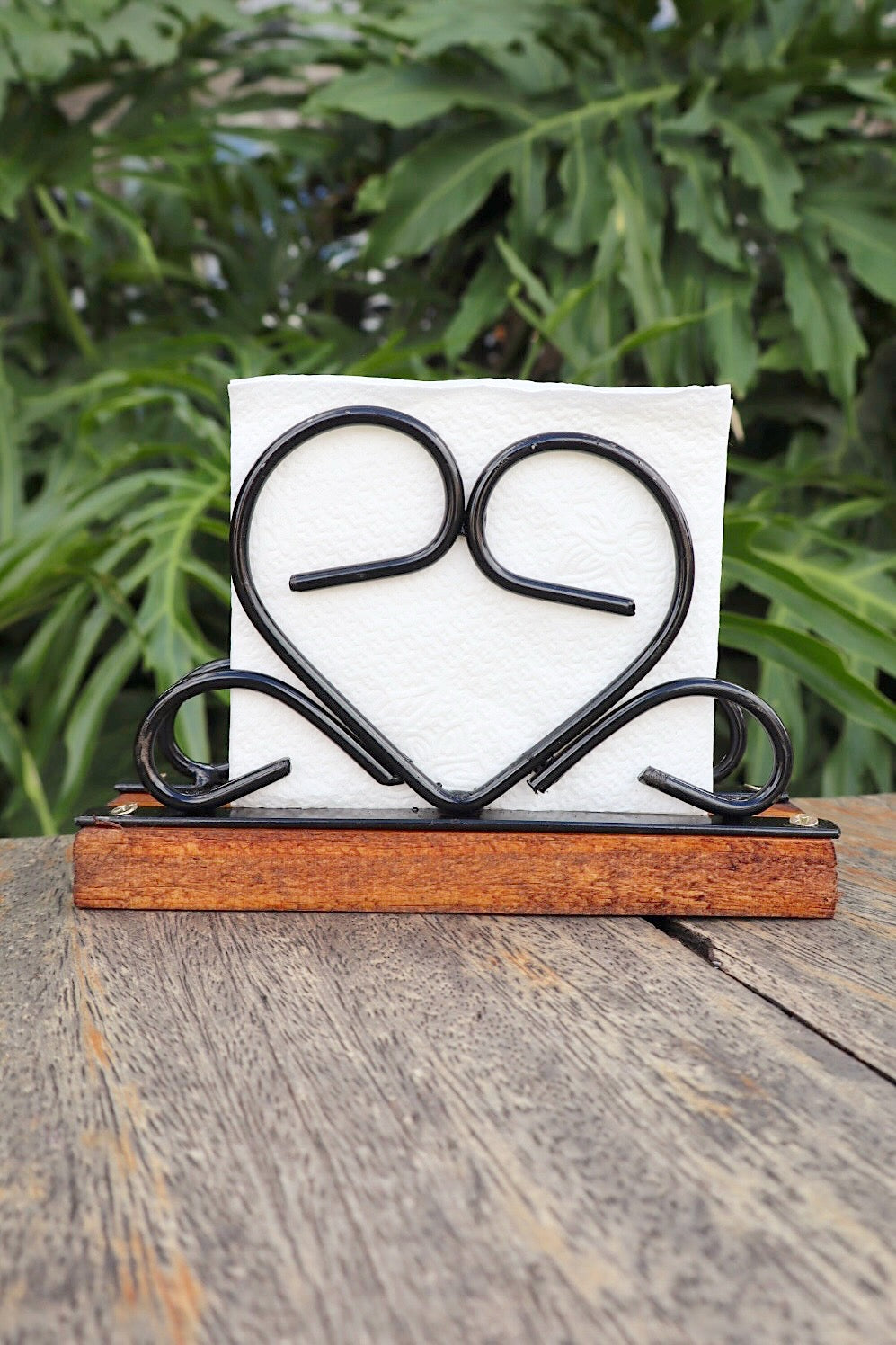 Lindo porta guardanapo produzido em madeira de peroba e ferro reciclado industrial.