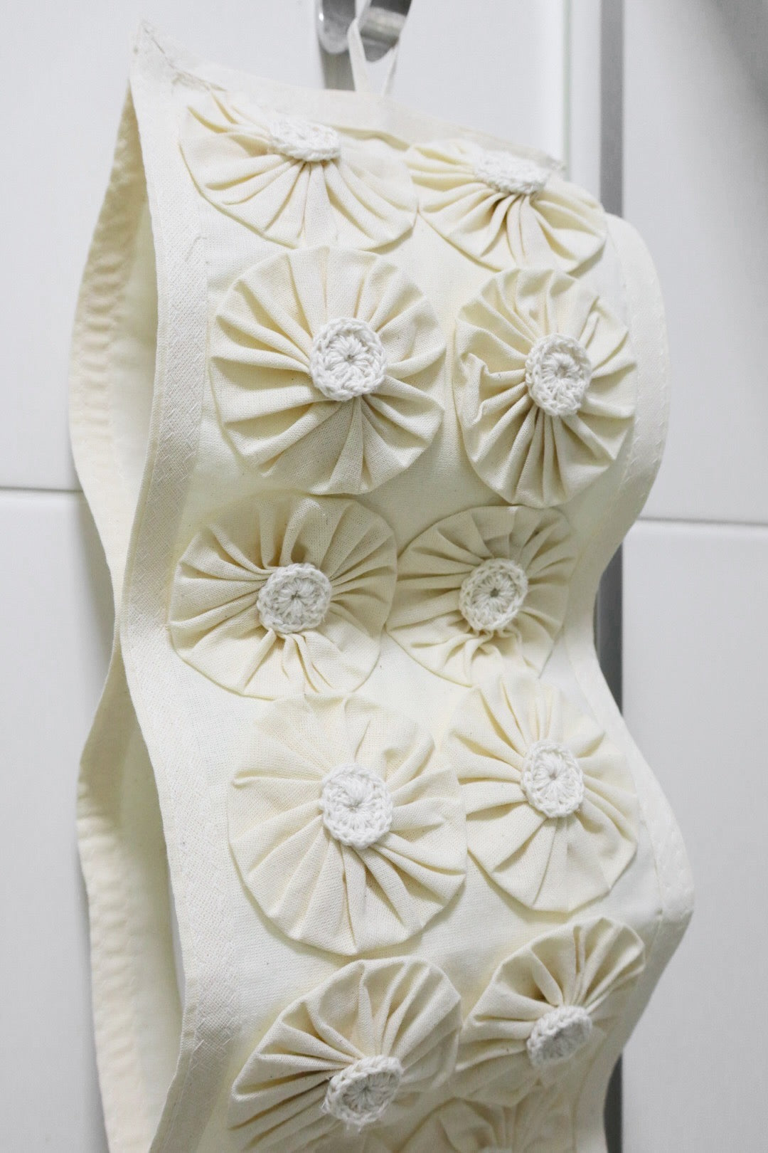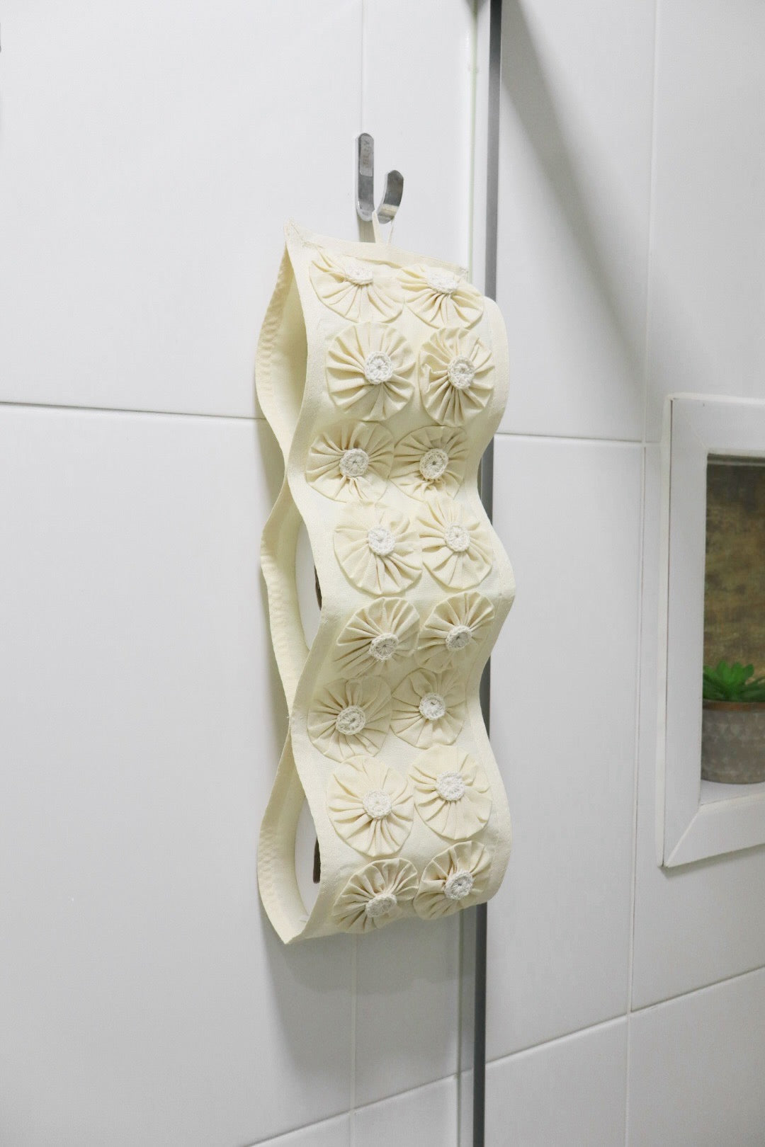 Porta Papel Higiênico 3 Lugares Algodão Fuxico Especial Cru