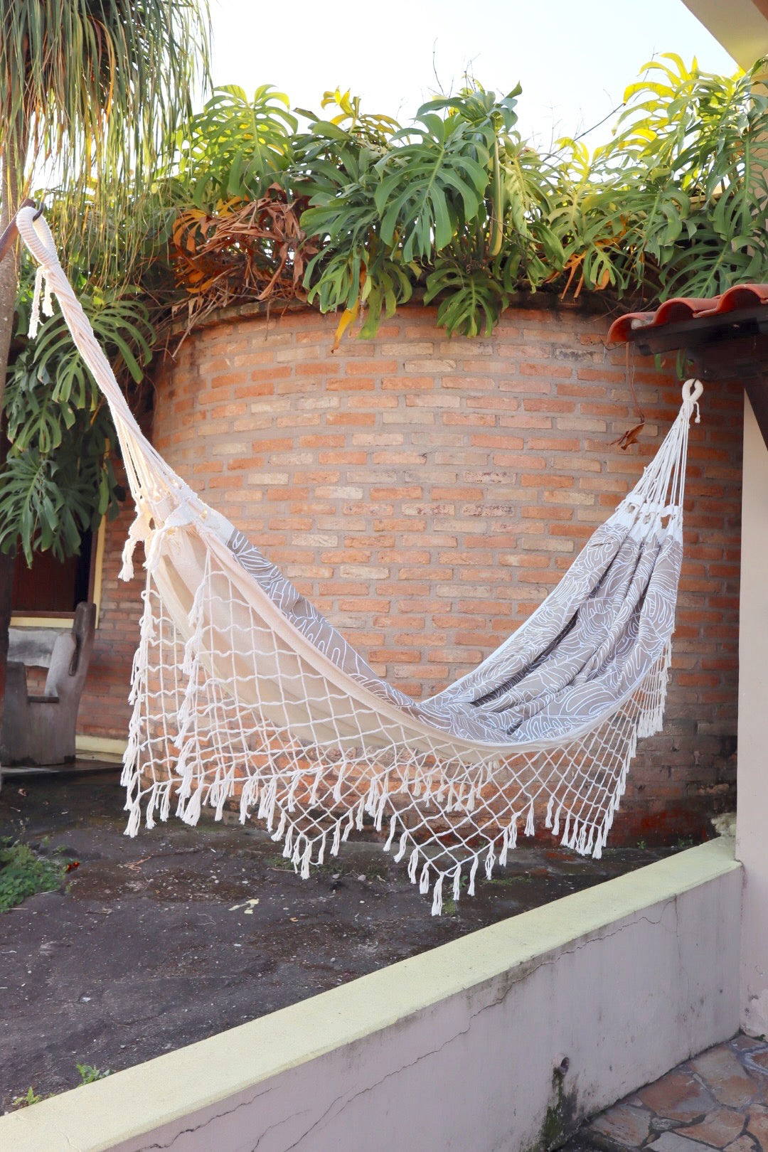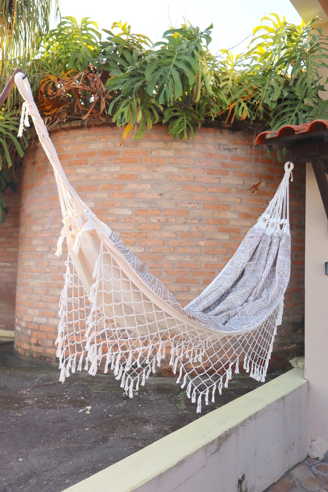 Rede de Algodão Forrada com Belize Semi Impermeável - Folhas Costela de Adão Bege