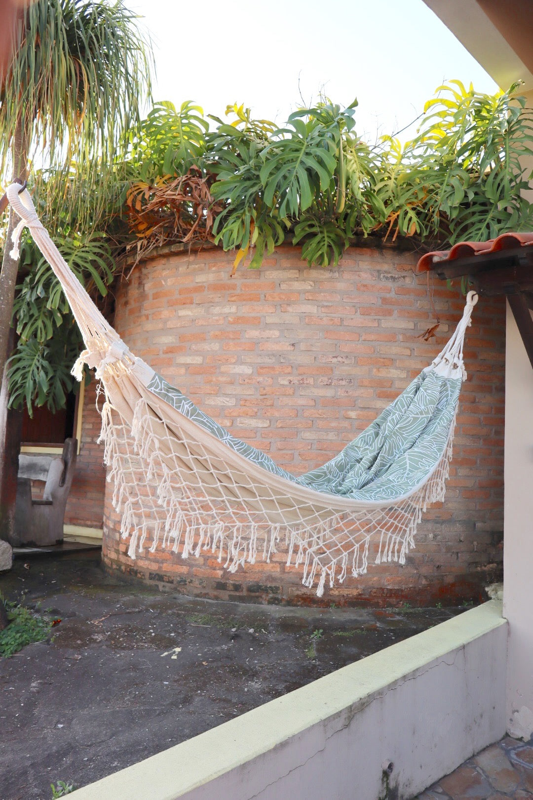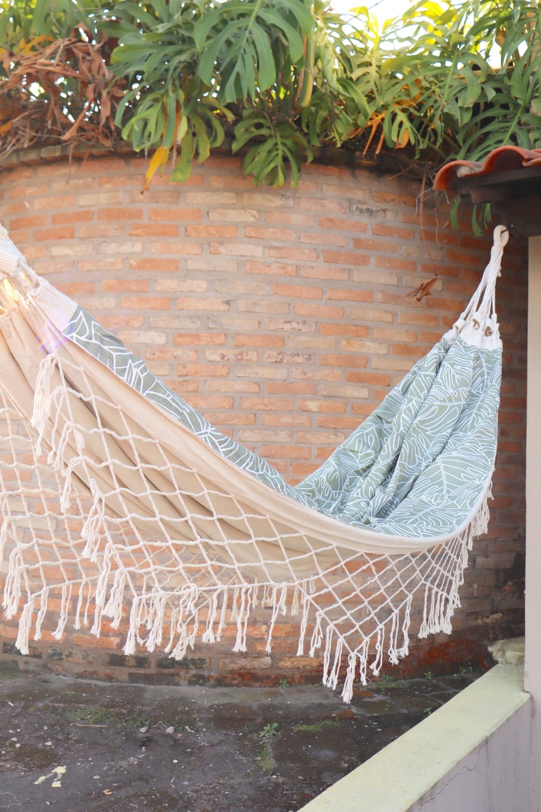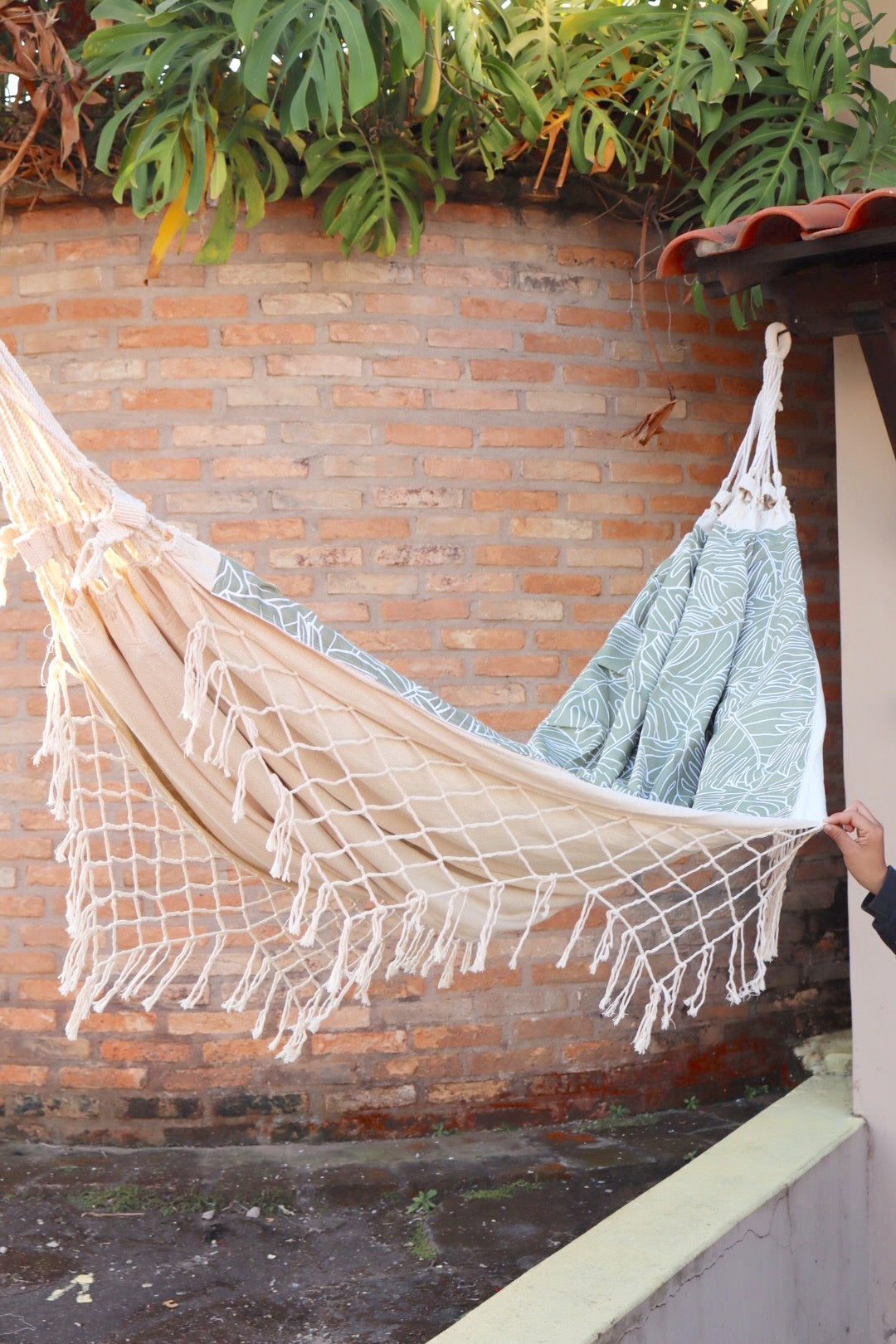 Rede de Algodão Forrada com Belize Semi Impermeável - Folhas Costela de Adão Verde