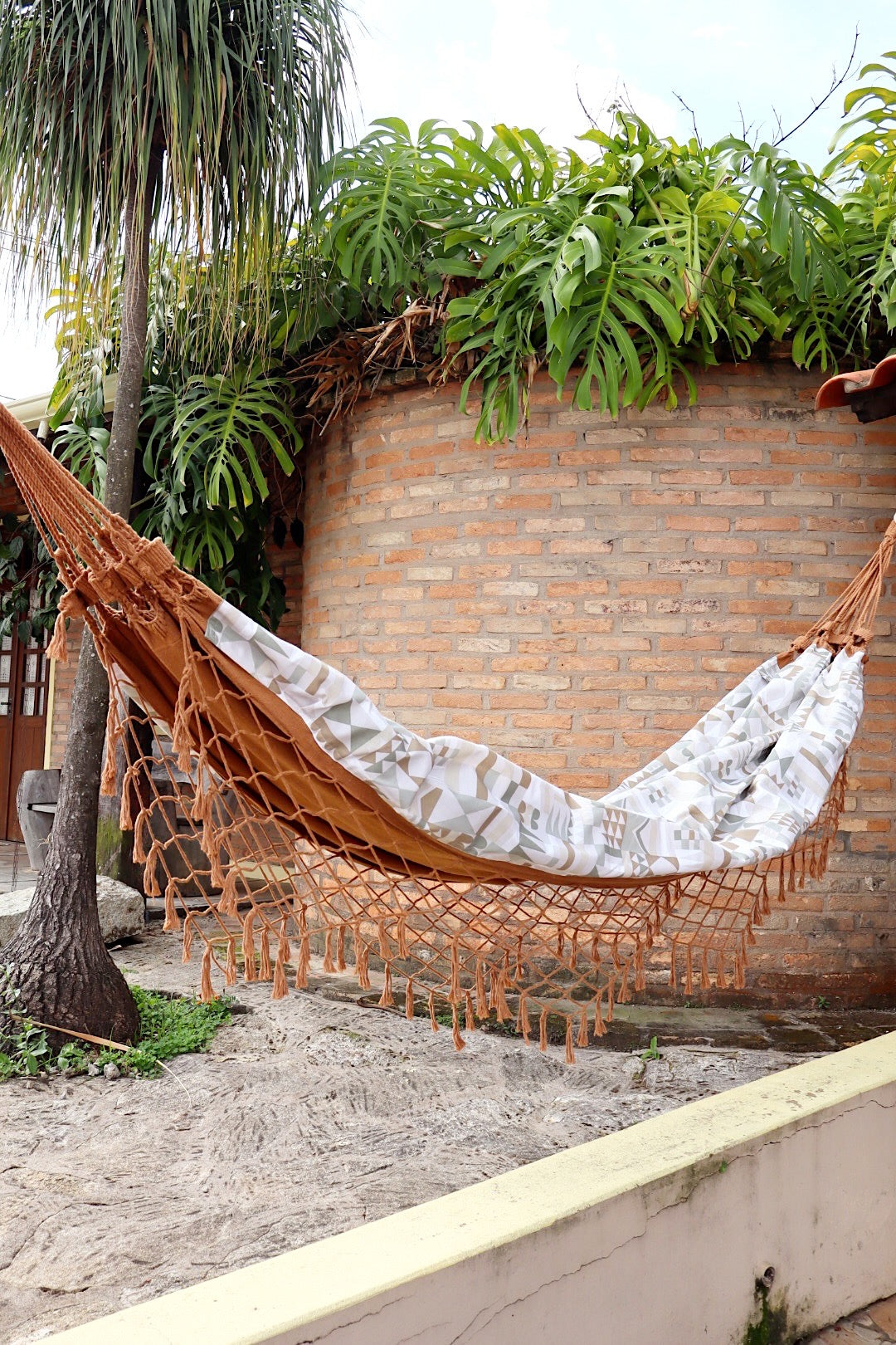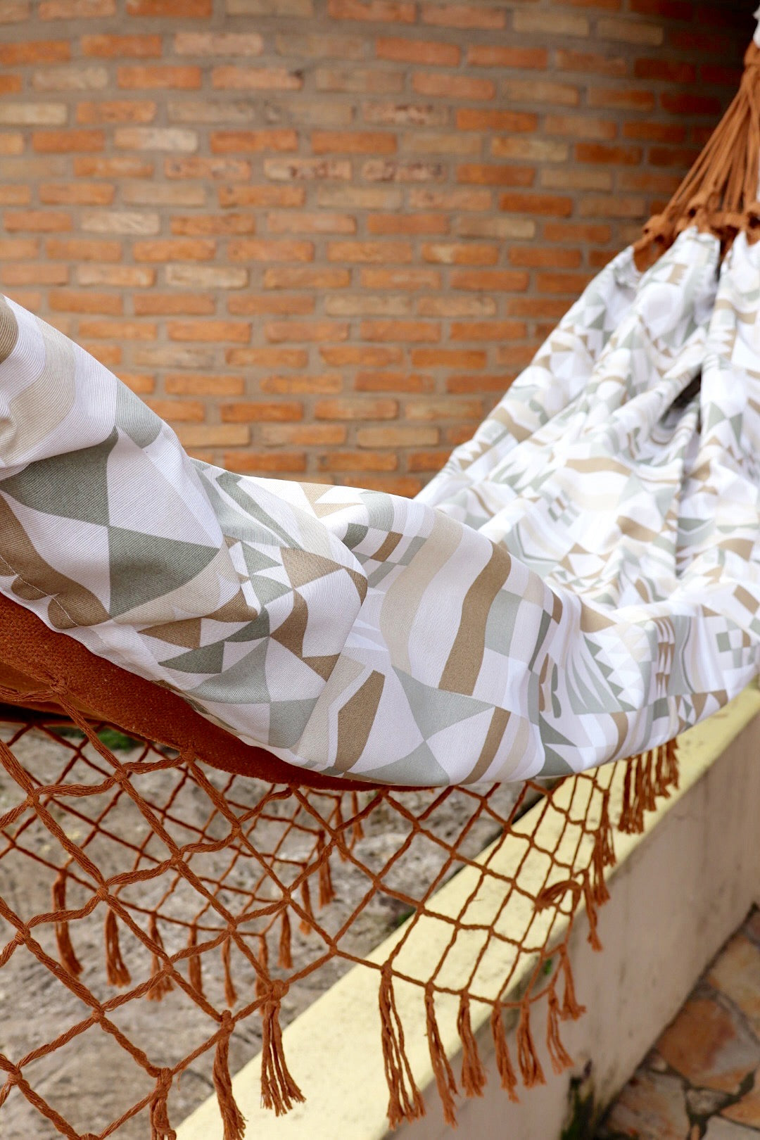 Rede de Algodão Forrada com Belize Semi Impermeável - Geométrico Verde e Marrom