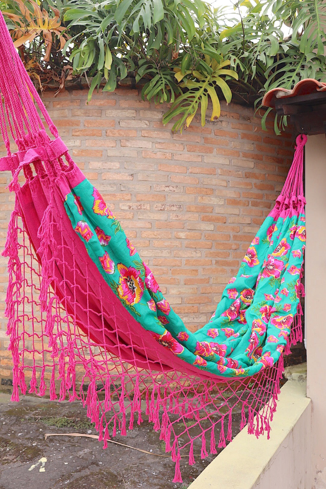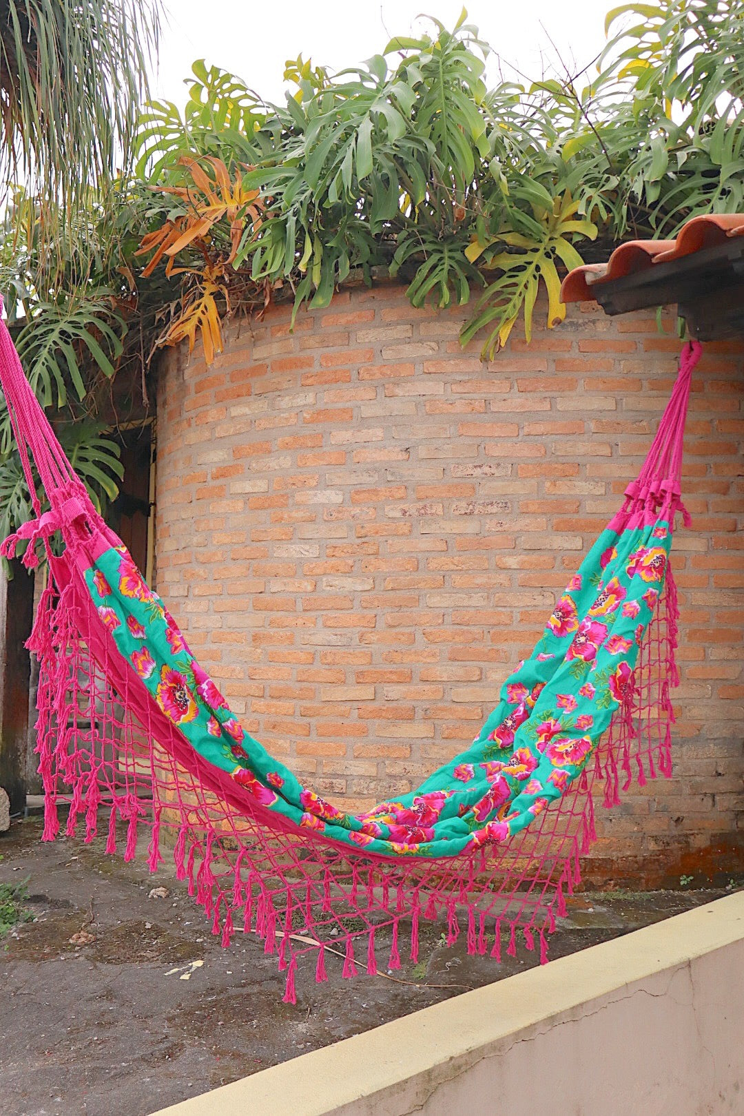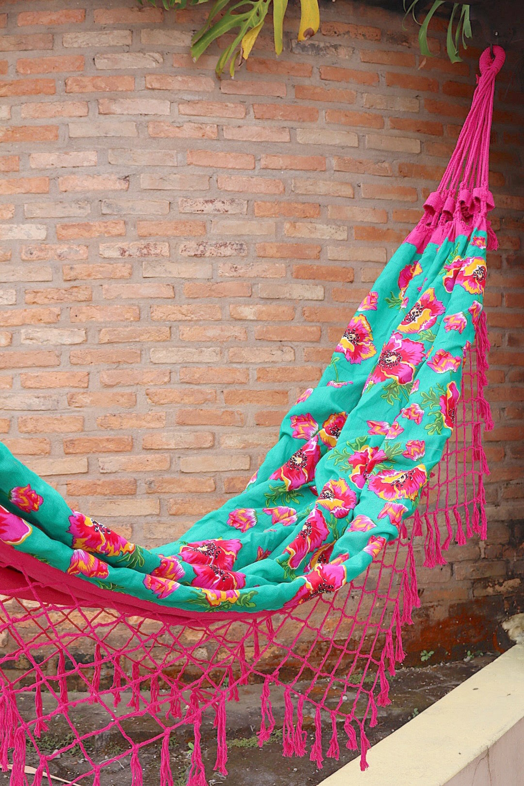 Rede de Algodão Forrada com Chita - Rosa com Tifanny