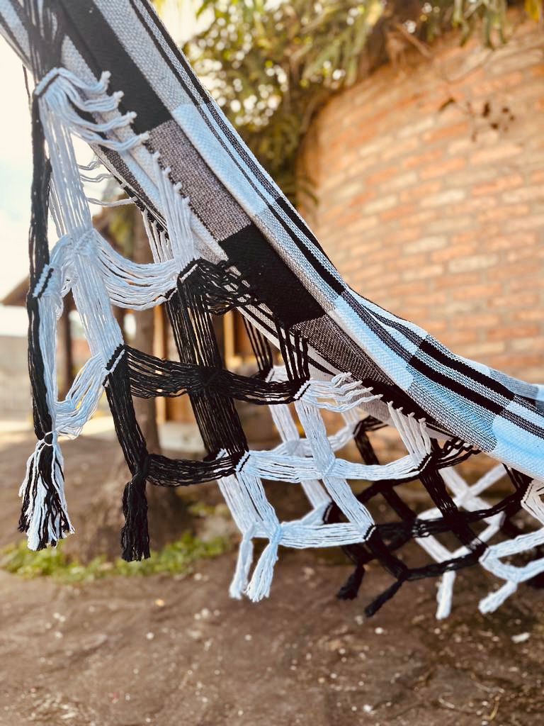 Rede De Descanso Luxo Lisa Preta e Branca