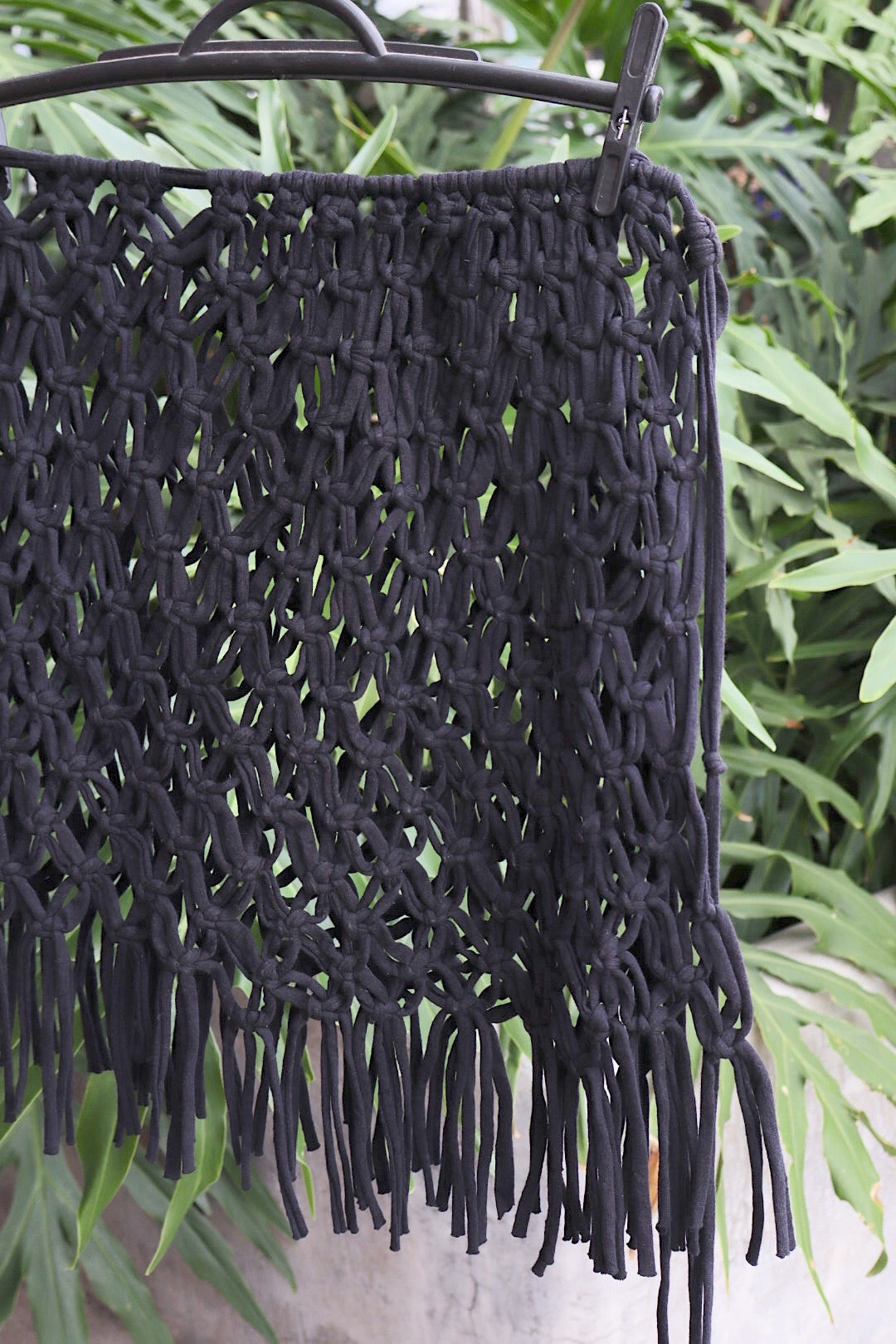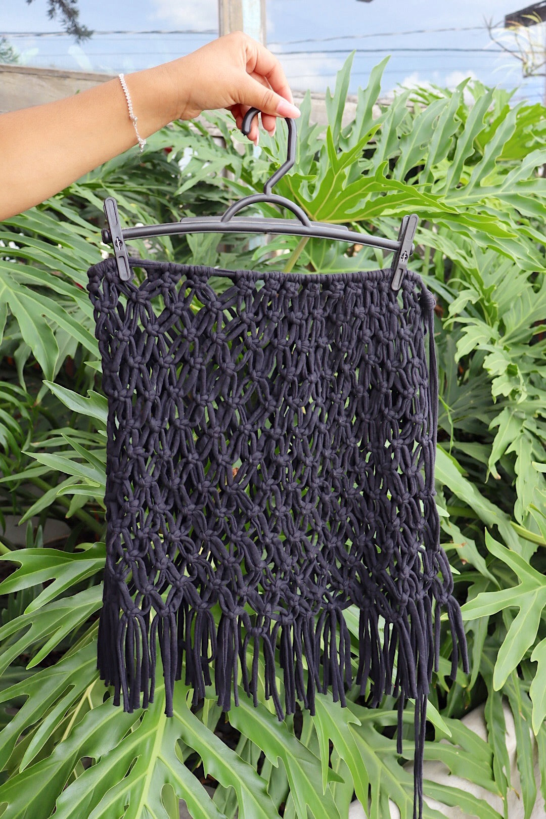 Saia toda em macramê, feita artesanalmente. Possui franjas, dando um movimento incrível. Peça artesanal e cheia de estilo, perfeita para compor com um biquíni, body ou até mesmo um shortinho por baixo e usar casualmente.