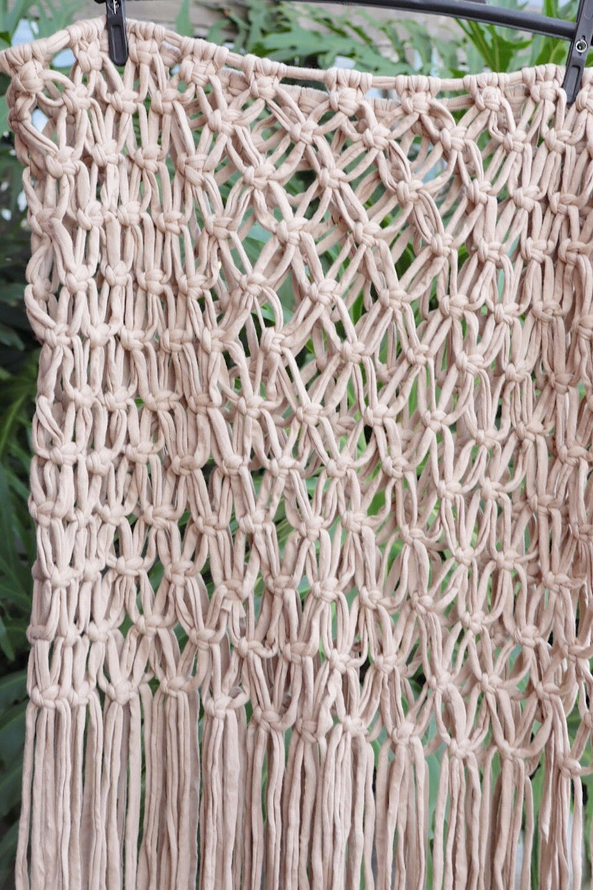 Por ser um produto feito a mão por diferentes pessoas, pode ocorrer variação no padrão do macramê, tamanho dos gomos e altura.