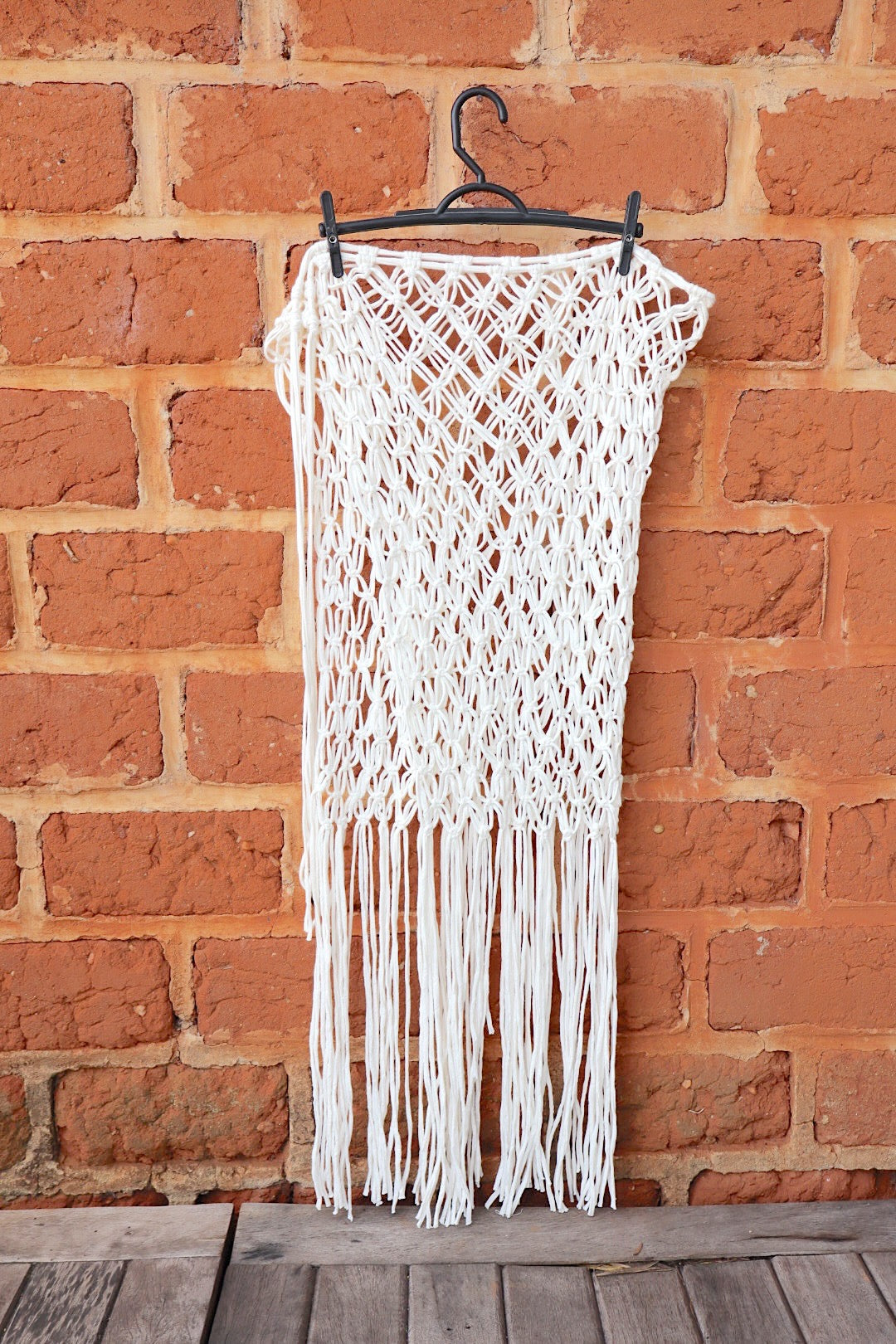 Saia toda em macramê, feita artesanalmente. Possui franjas, dando um movimento incrível. Peça artesanal e cheia de estilo, perfeita para compor com um biquíni, body ou até mesmo um shortinho por baixo e usar casualmente.