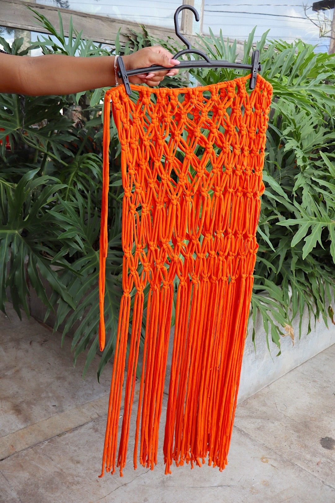 Por ser um produto feito a mão por diferentes pessoas, pode ocorrer variação no padrão do macramê, tamanho dos gomos e altura.