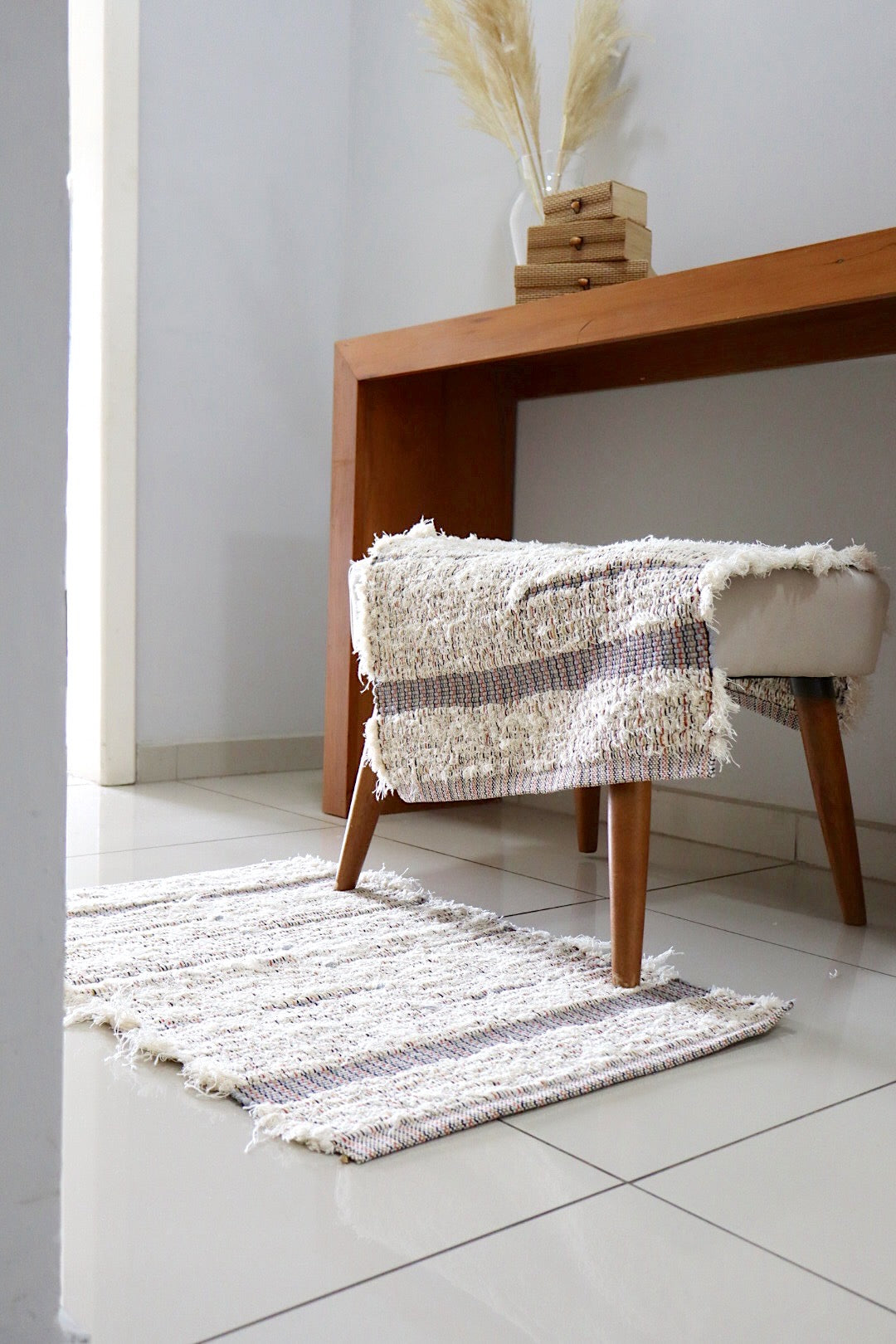 Além do ar de conforto que trazem para o ambiente, protegem o piso e delimitam espaços. Confeccionados à mão em Algodão, nossa linha de tapetes irá trazer diversas vantagens na sua rotina do dia a dia.