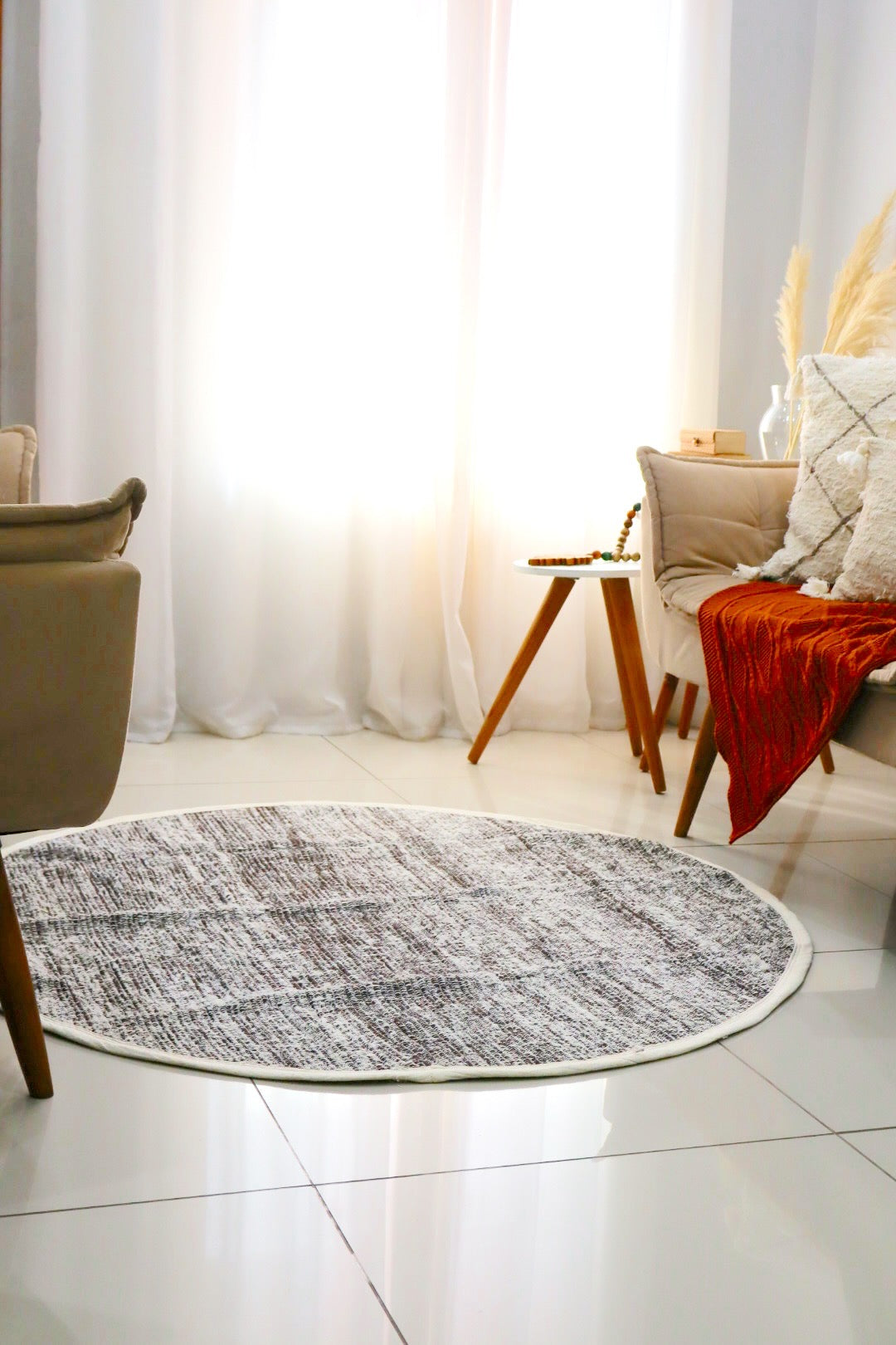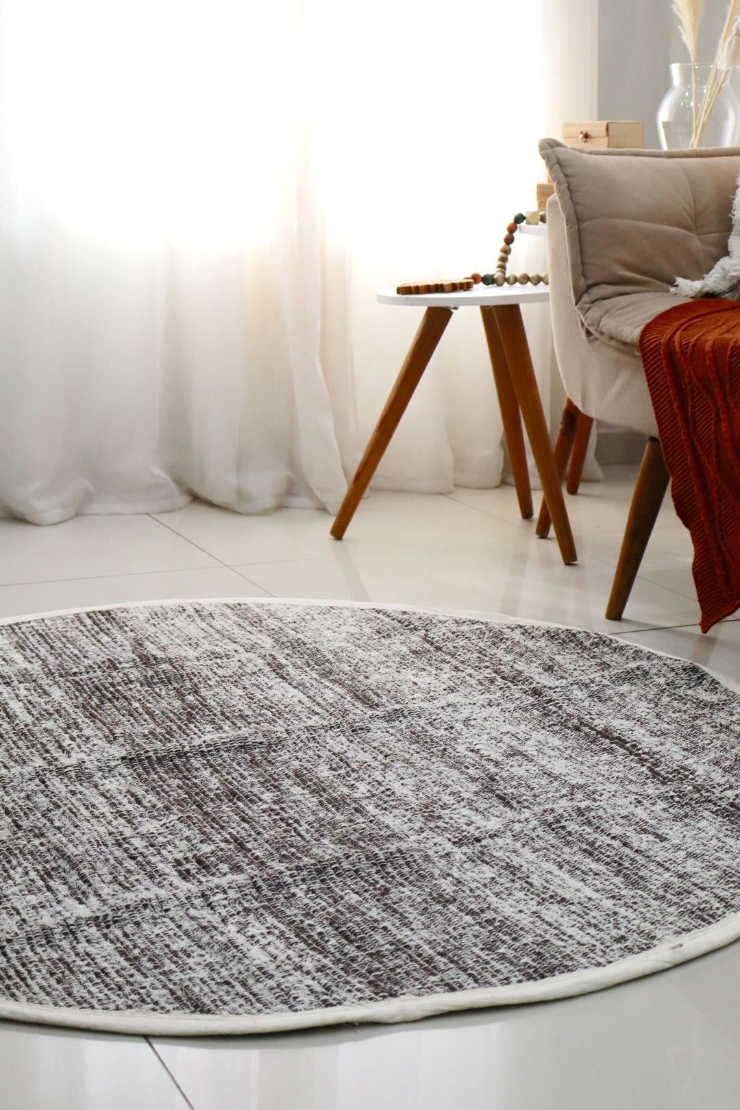 Tapete Algodão Redondo Dupla Face Cru/ Preto 2,0m