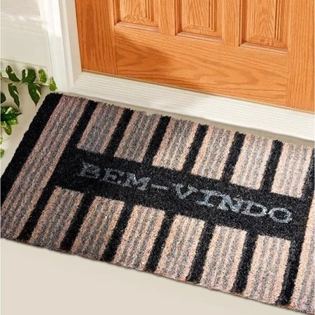 Tapete Bem Vindo Fibra de Coco Antiderrapante Bem Vindo Listras Pretas