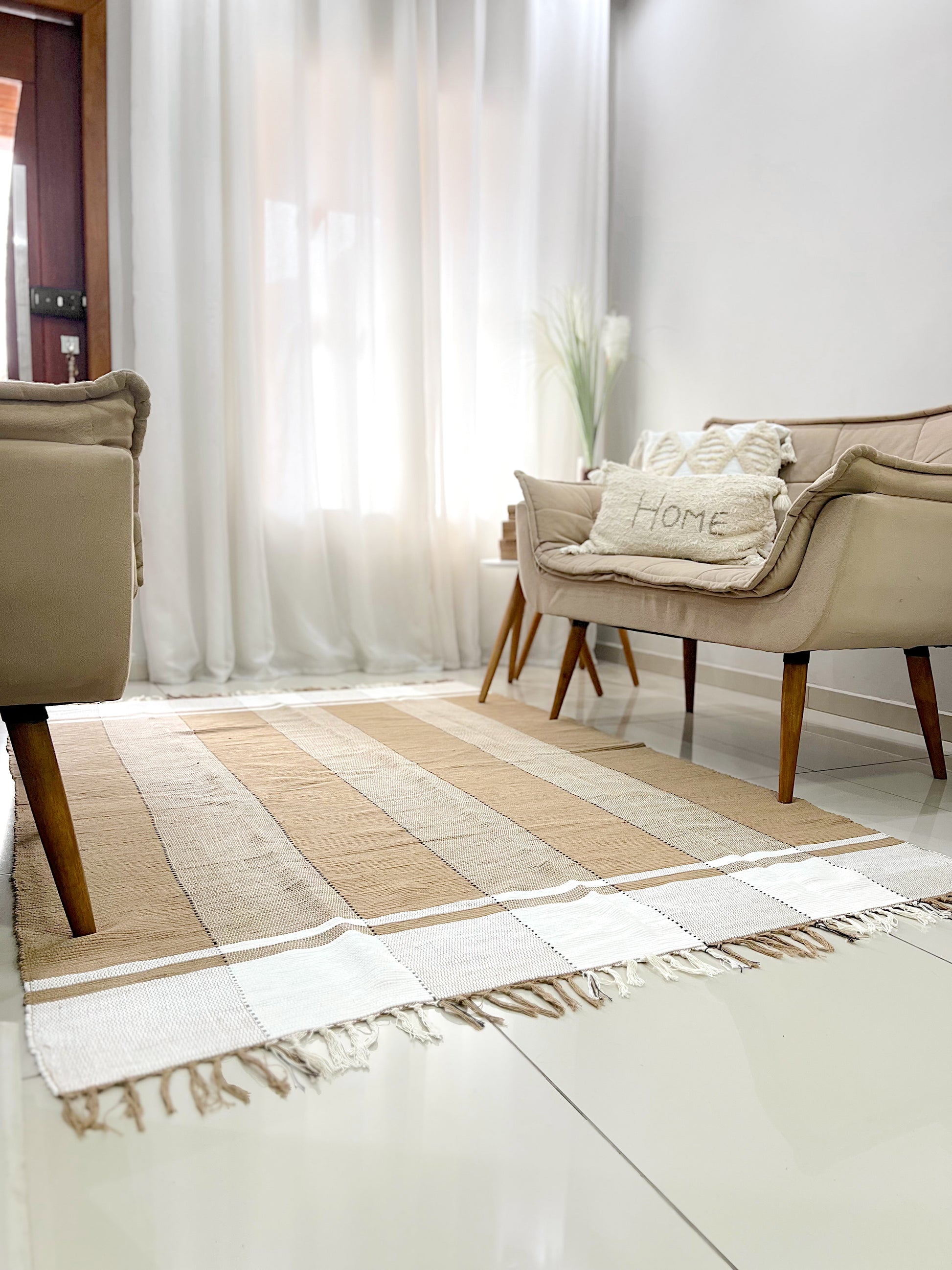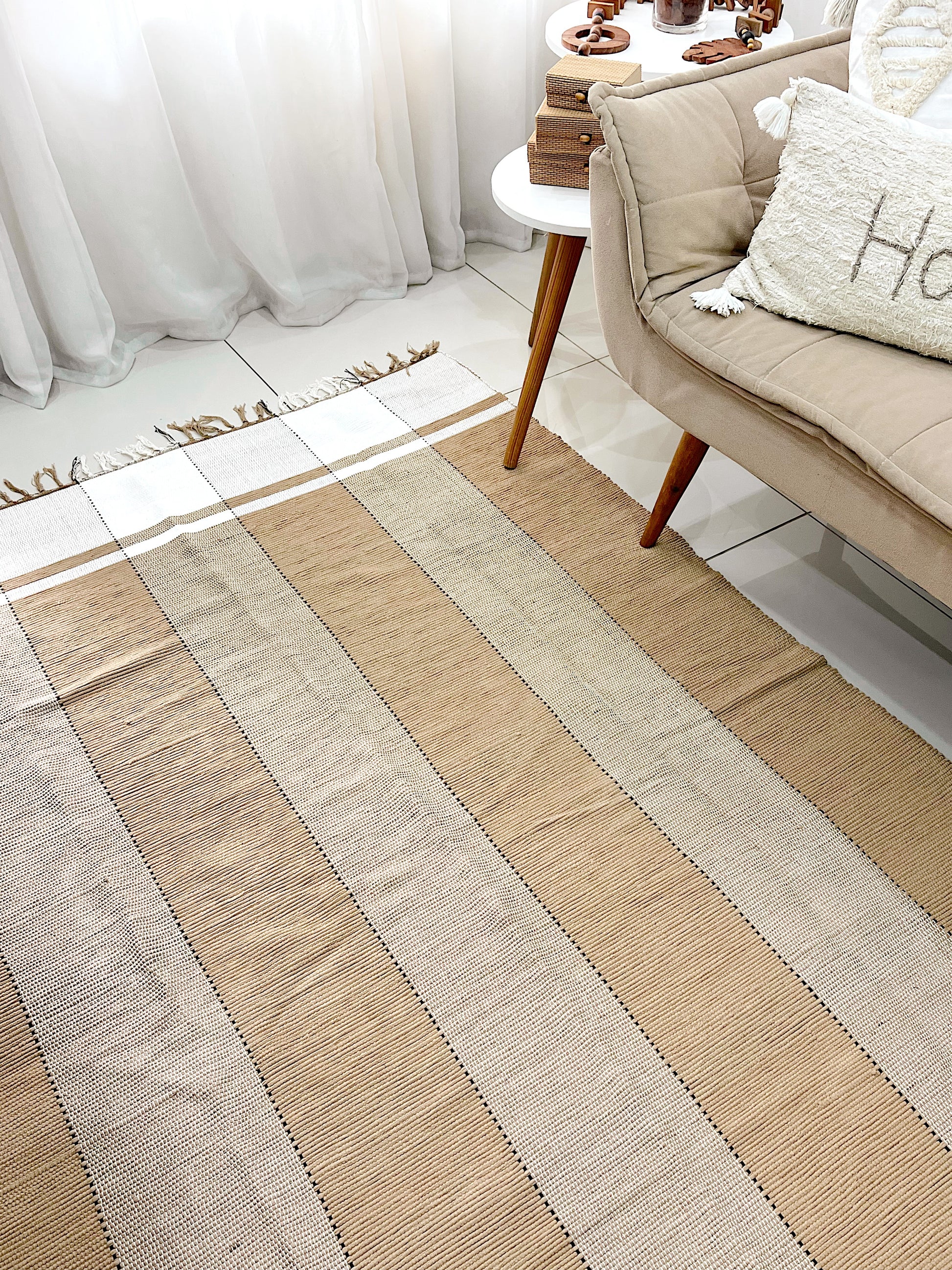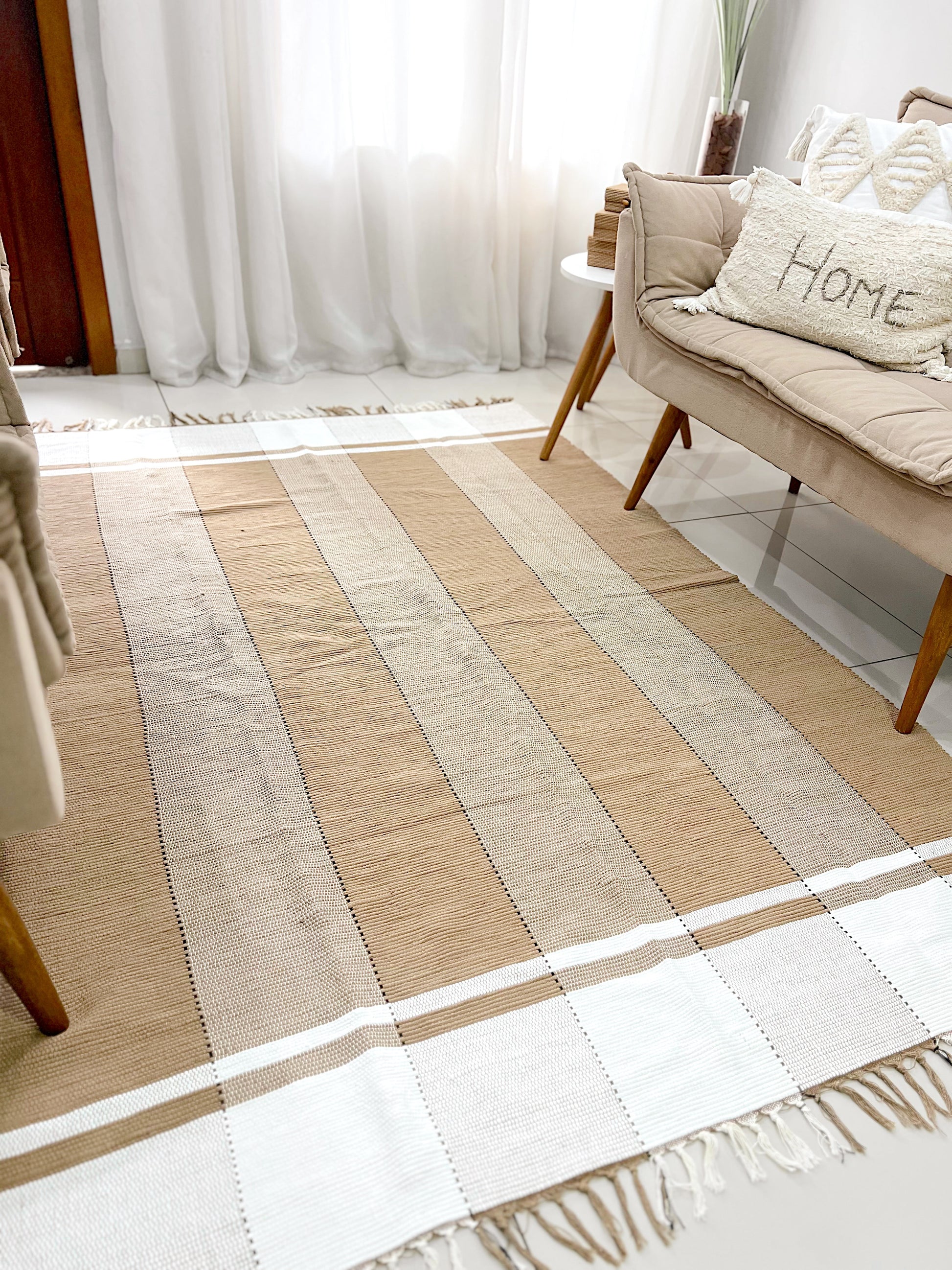 Todos os nossos tapetes são feitos de forma manual, artesanalmente, podendo ocorrer uma variação de até 10% no tamanho, para mais ou para menos.