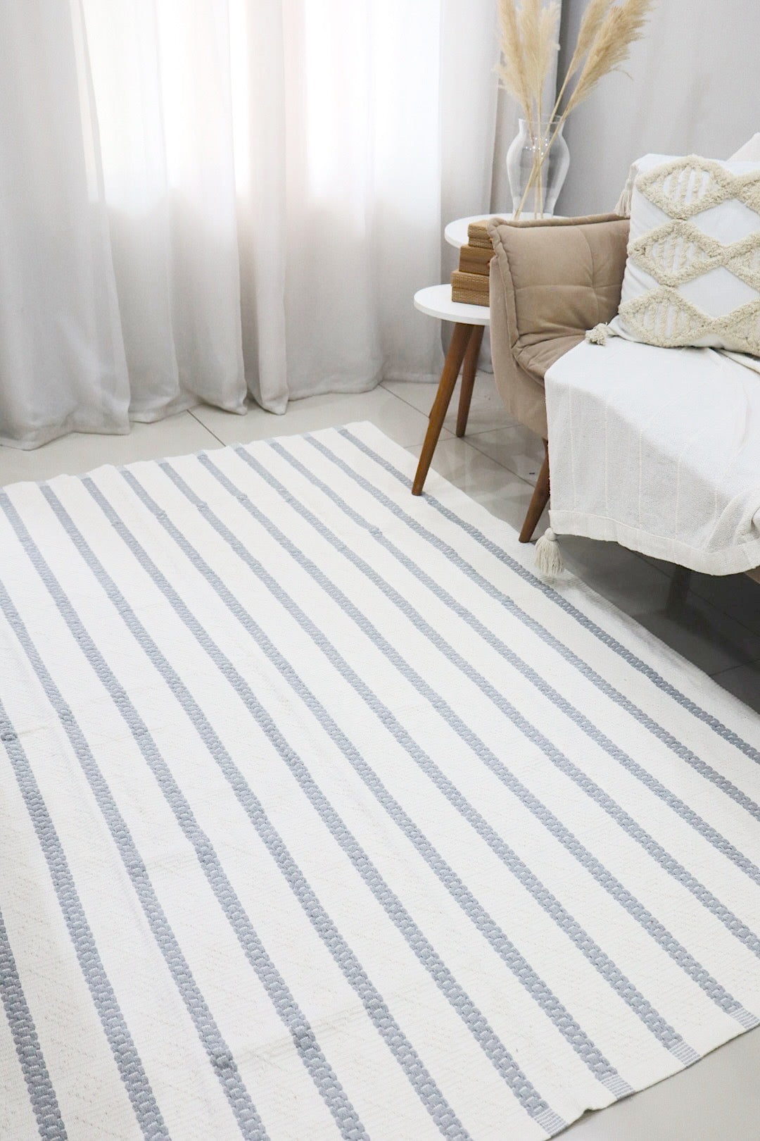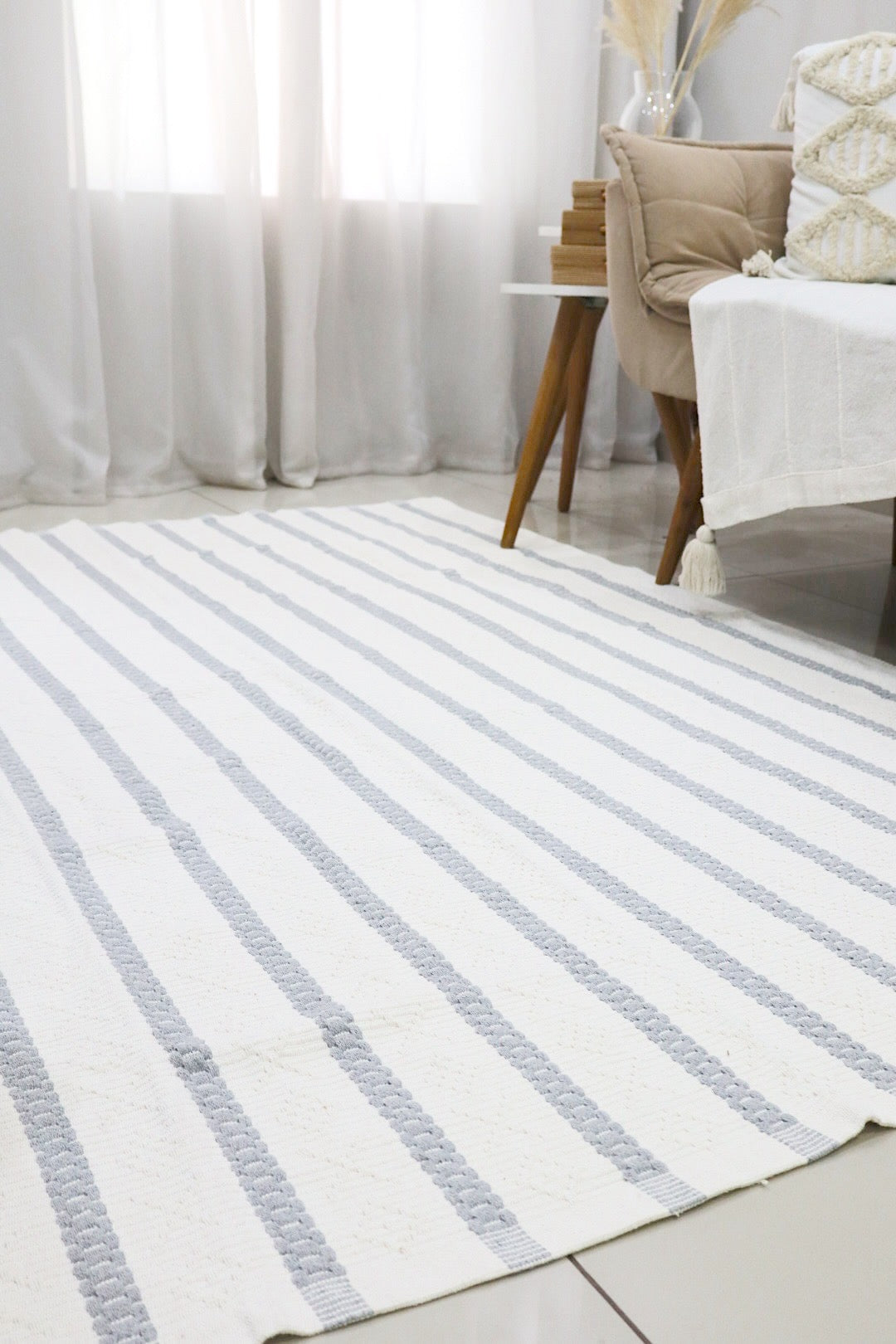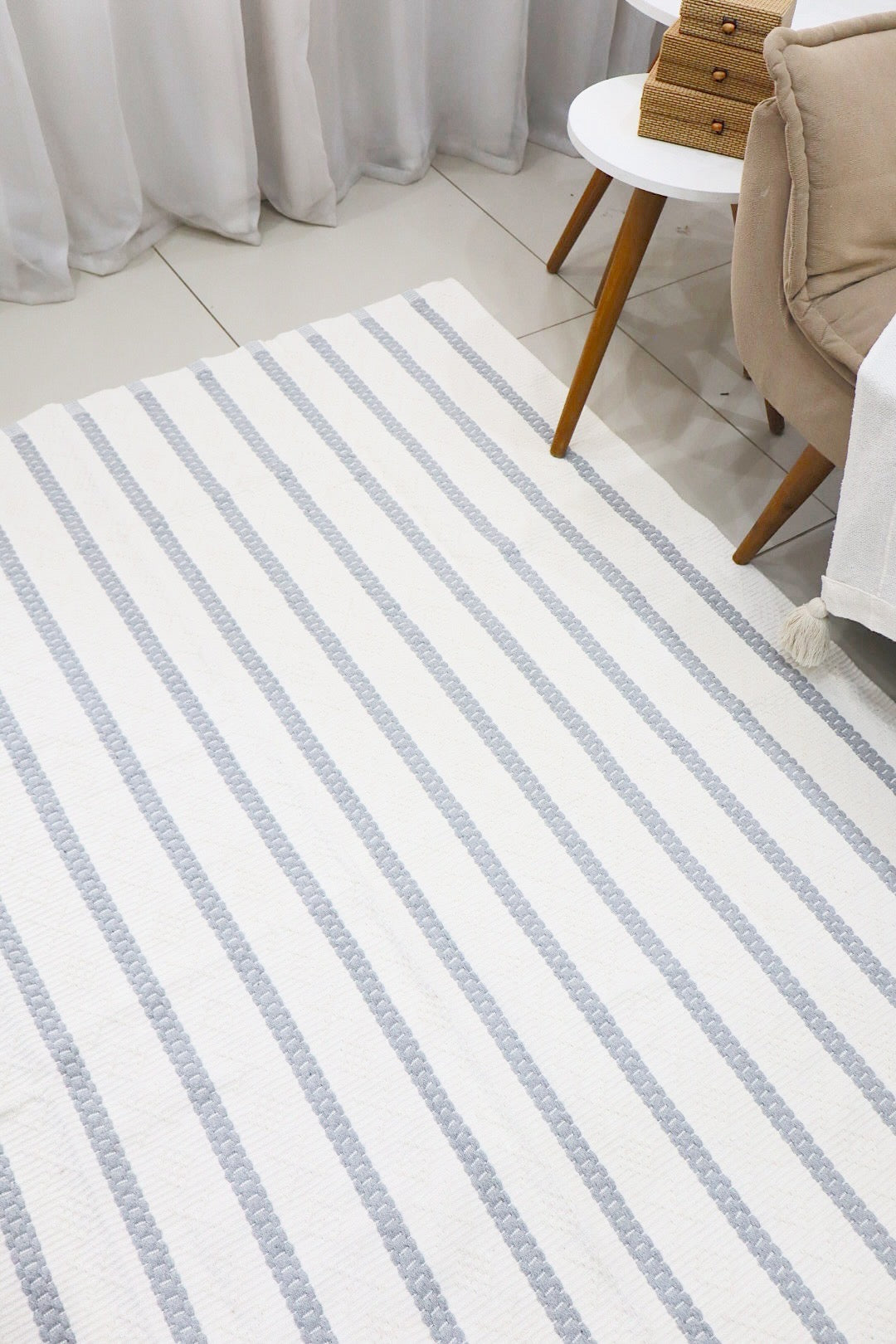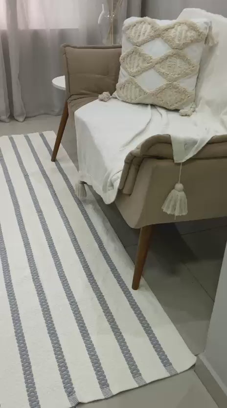 Tapete Itatiaia Listrado Algodão Cru com Cinza 1,50x2,00m