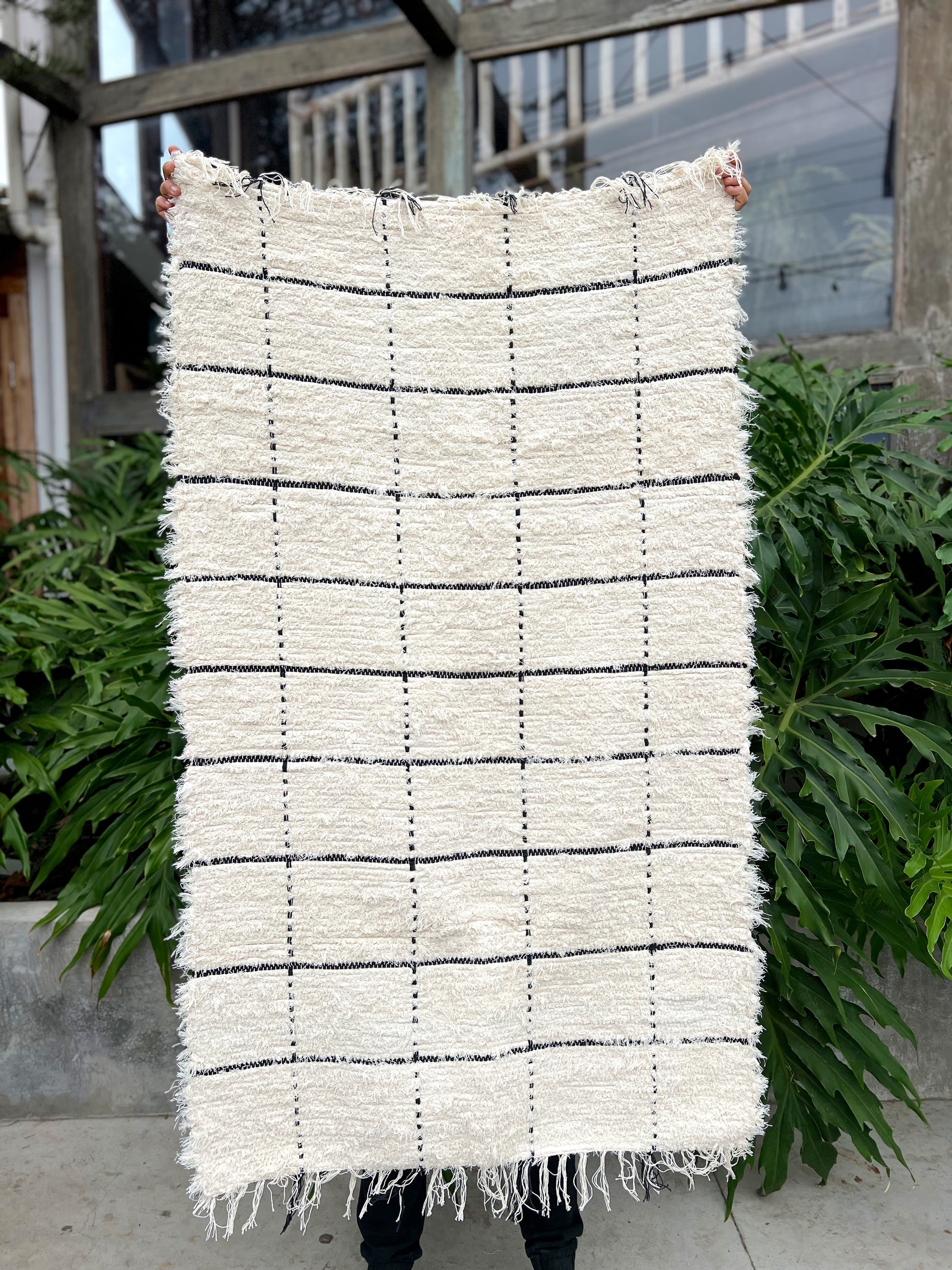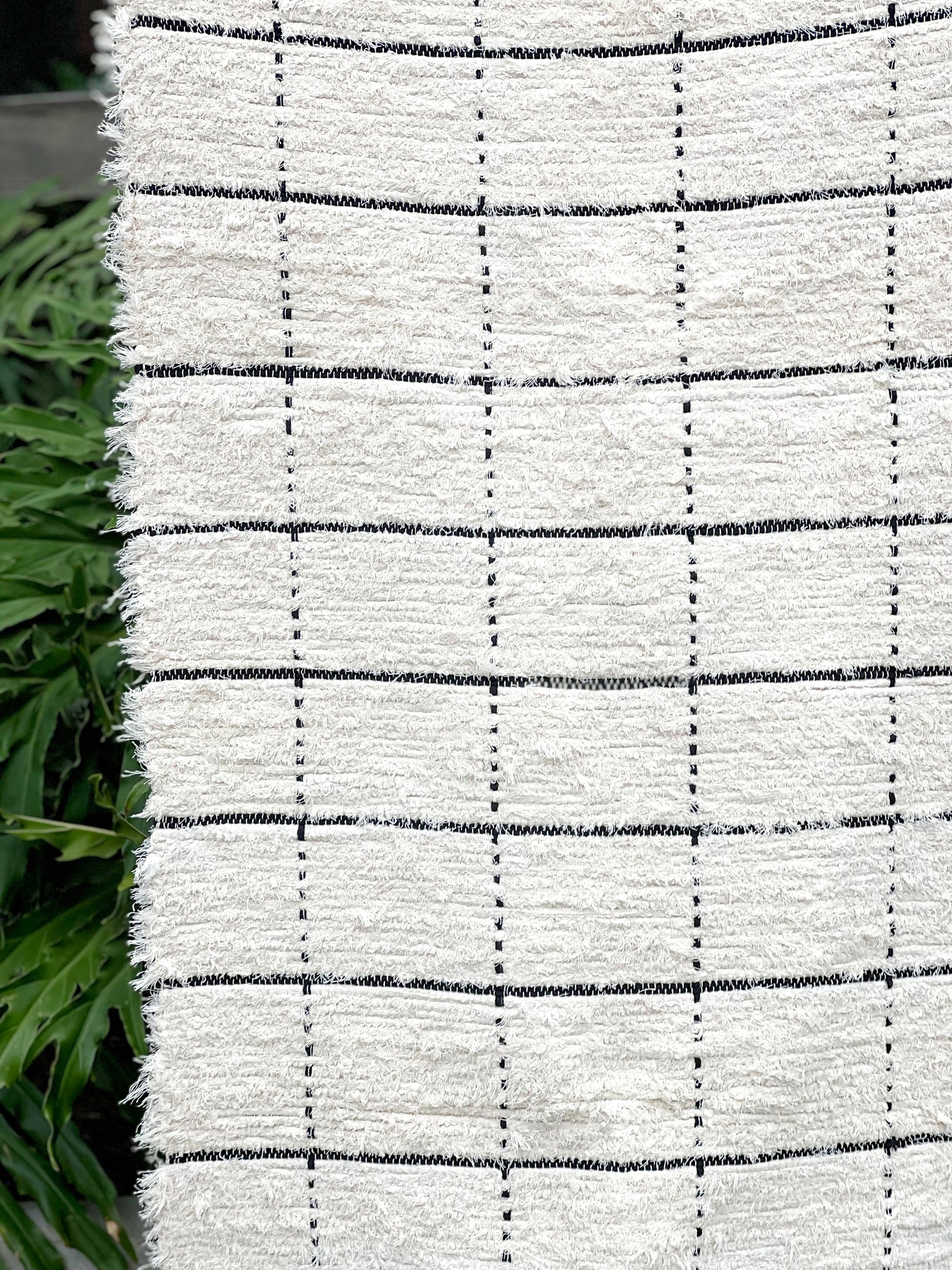 Tapete Médio Algodão Felpudo Grid Preto 0,80x1,50m