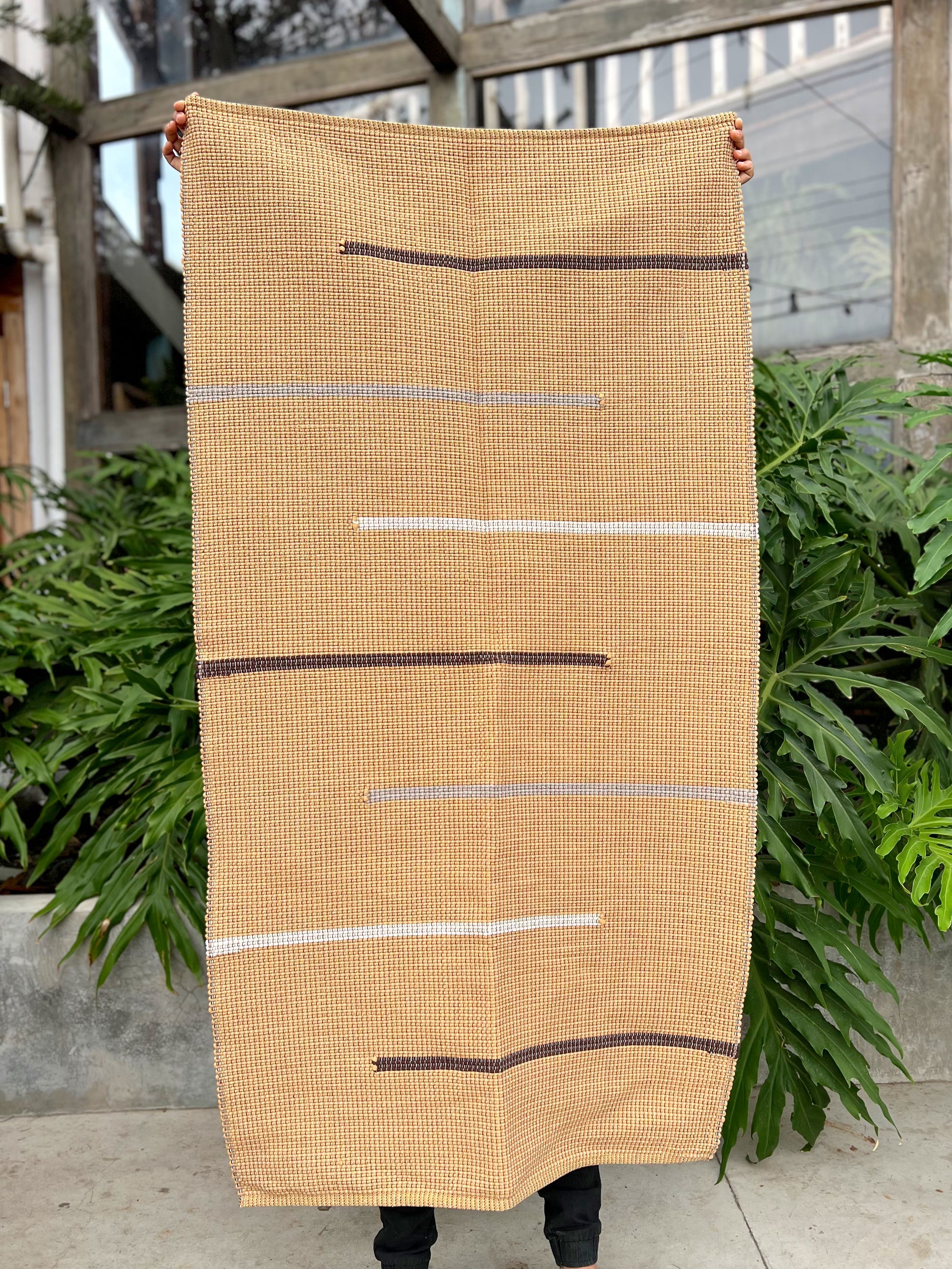 Os tapetes dessa linha são confeccionados em tear, sua principal matéria prima é o algodão, com fios 8/2 em teia dobrada, que proporcionam à peça uma textura firme pela quantidade de fios utilizados na sua tecelagem.