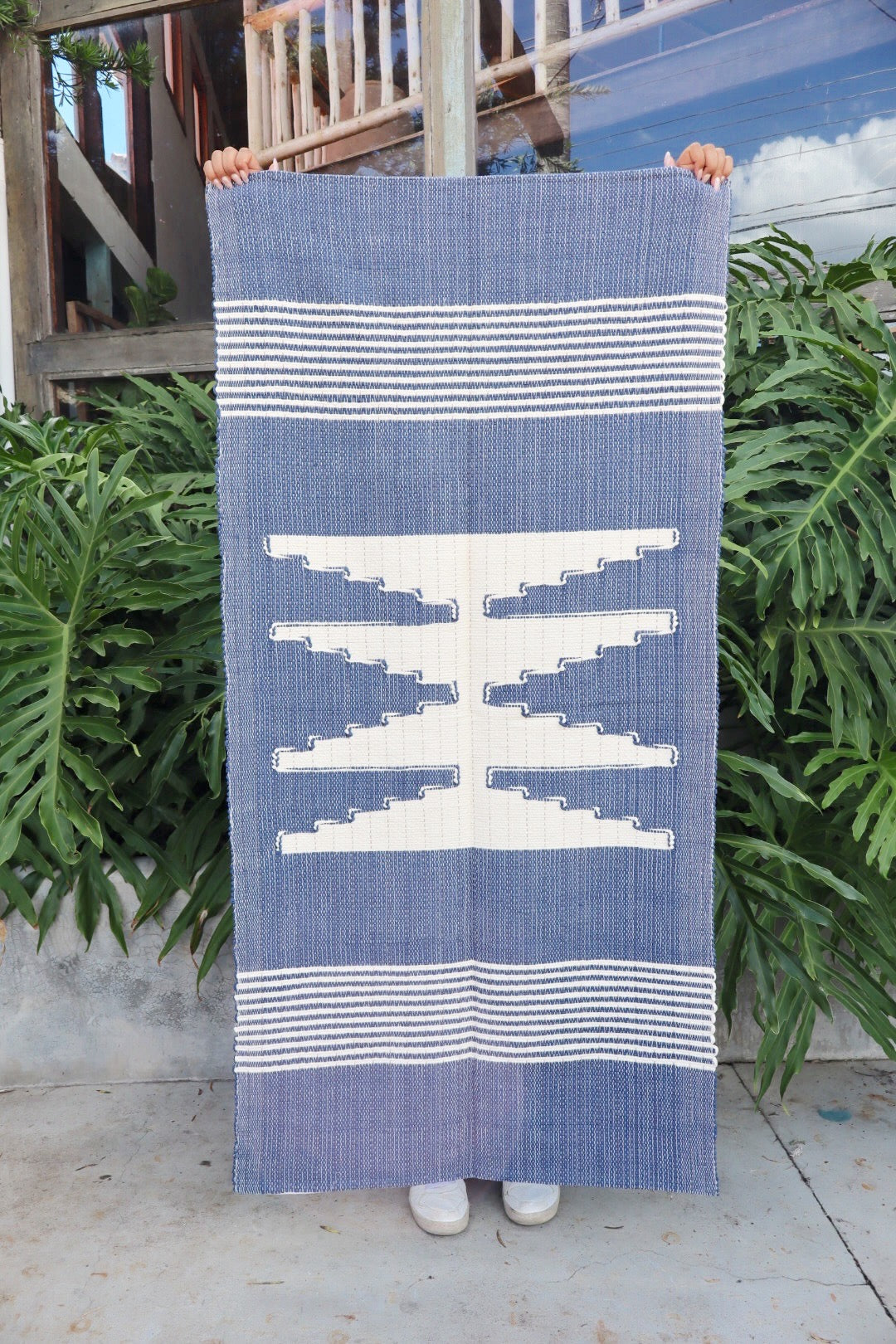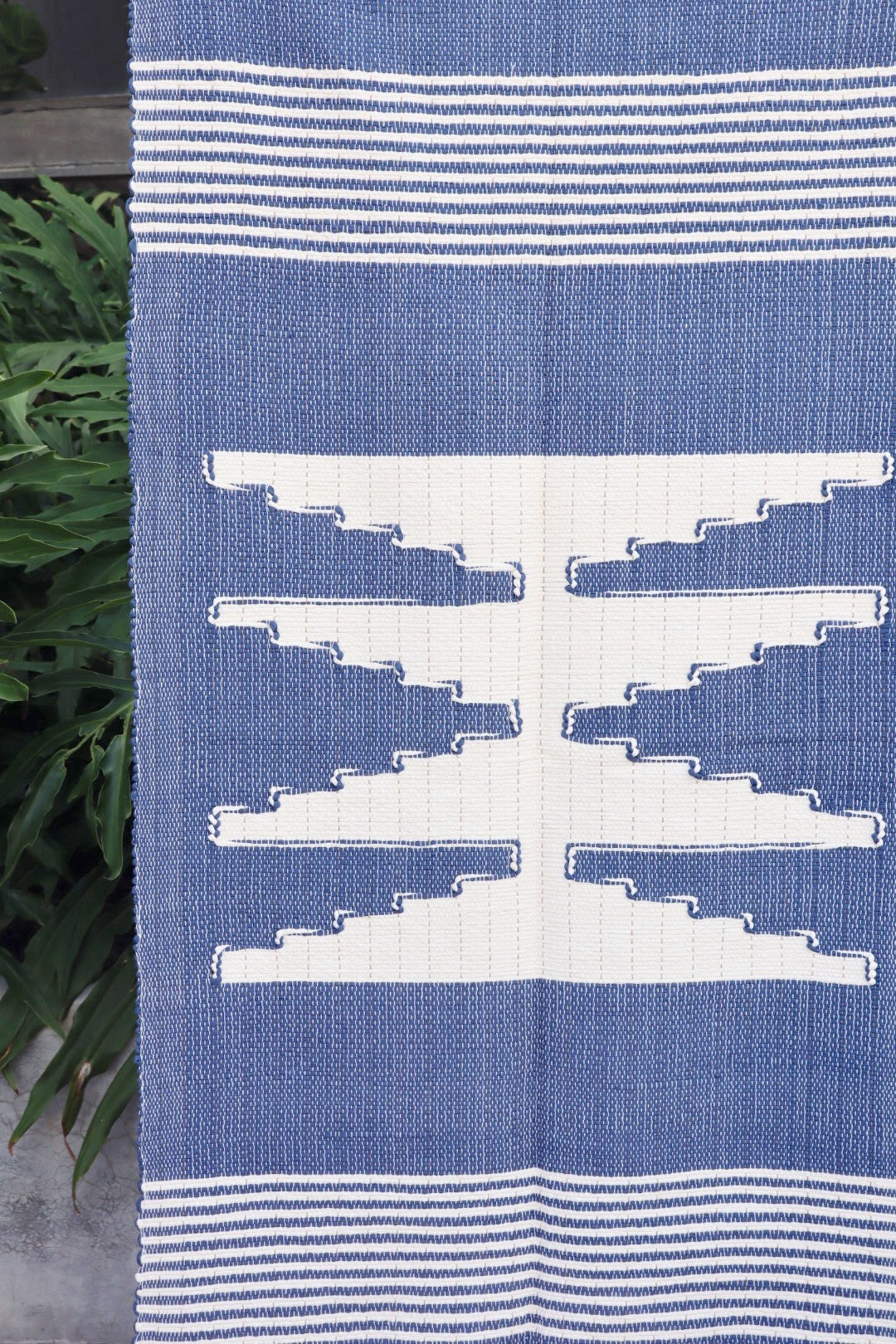 Tapete Médio Malha Azul com Bico Cru Sem Franja