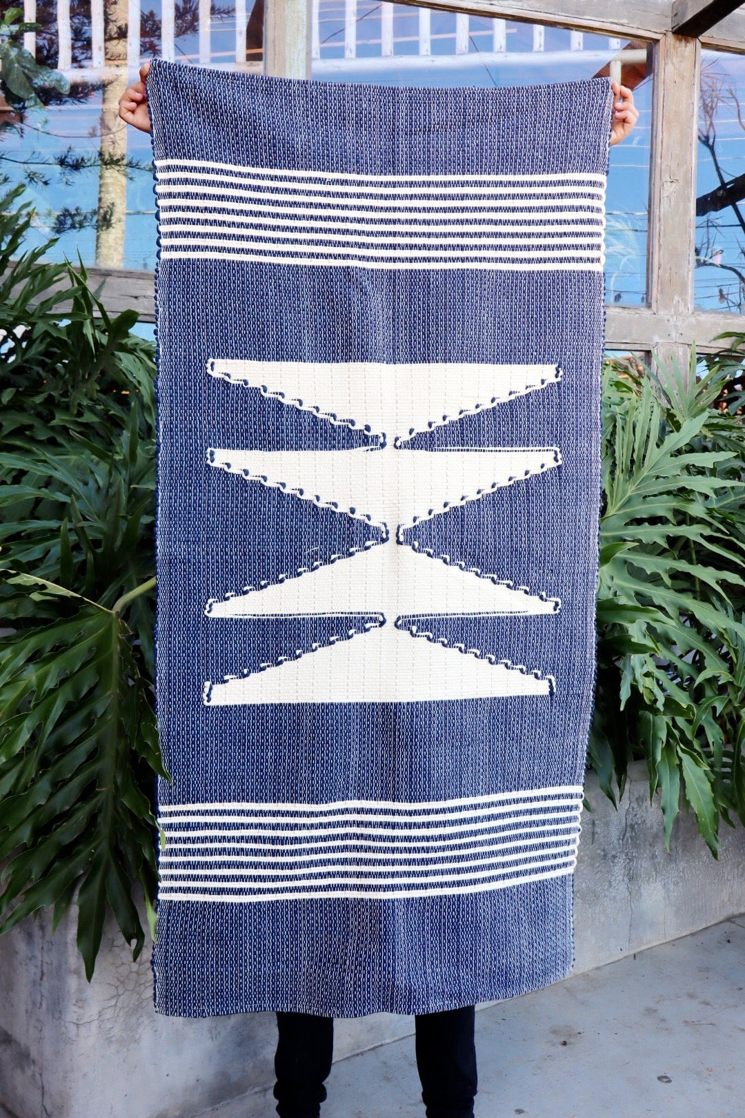 Tapete Médio Malha Azul Escuro com Bico Cru Sem Franja