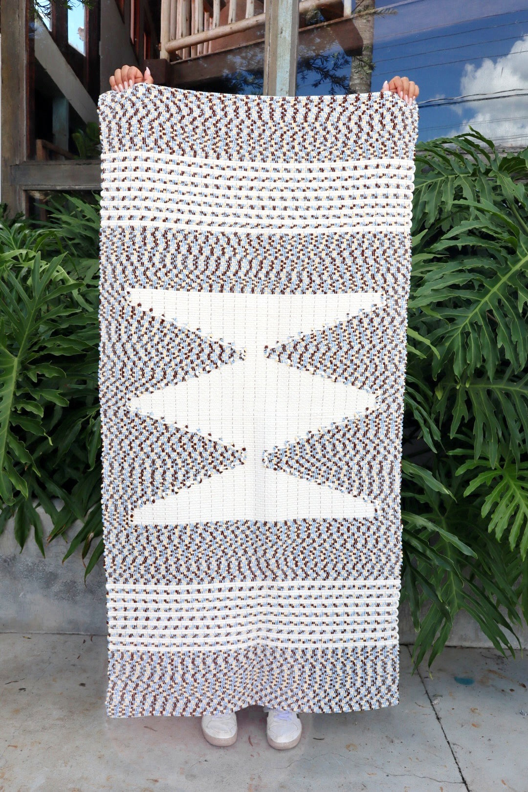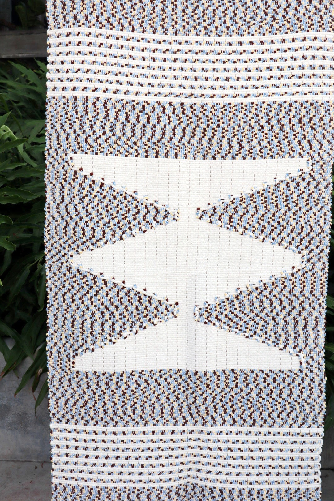 O tapete sofre pequenas alterações na ordem e também tonalidade das cores por se tratar de uma peça manual, nada que altere a originalidade da peça. Se mantendo igual o desenho geométrico, as listras sempre tem variações.
