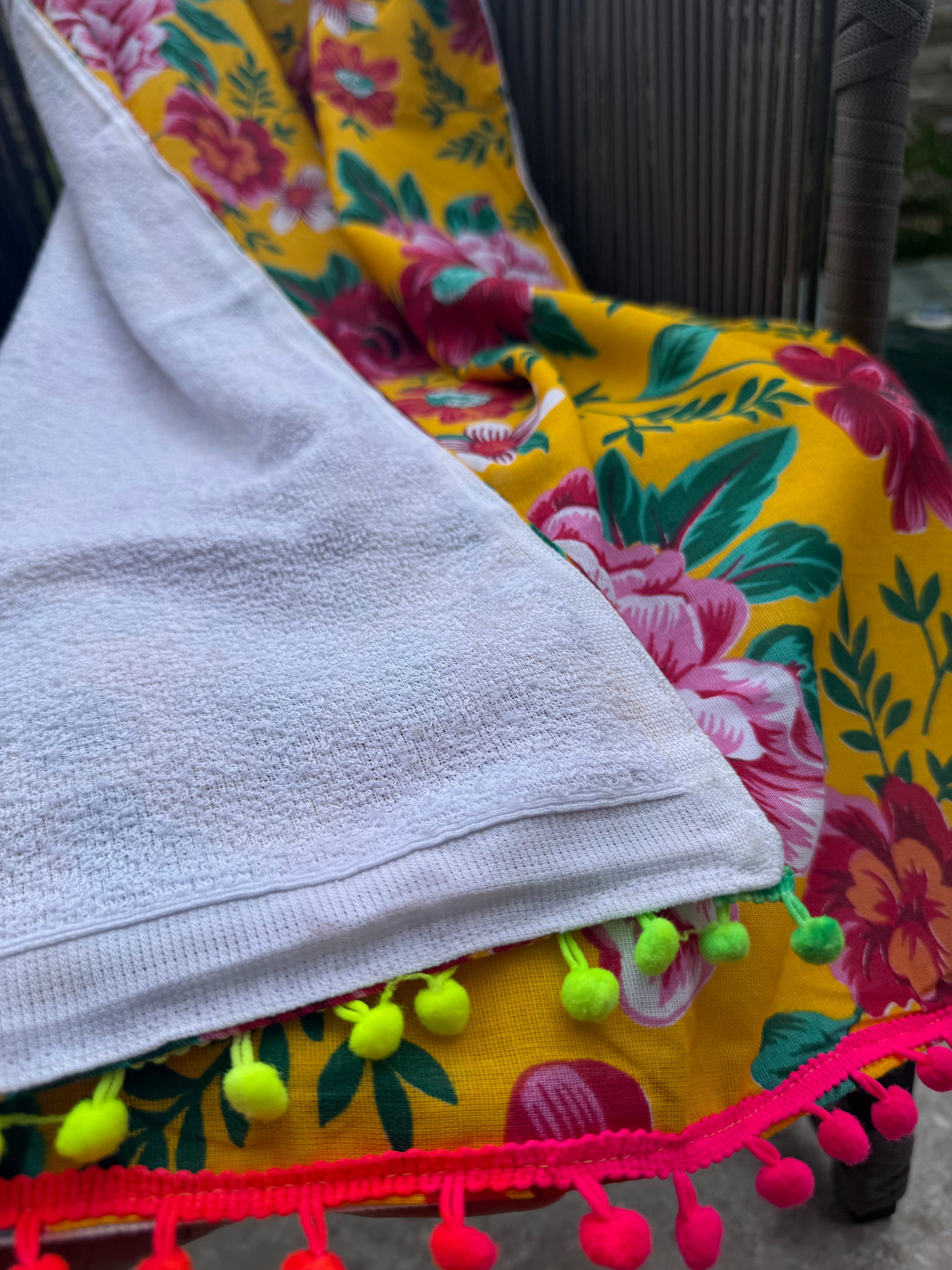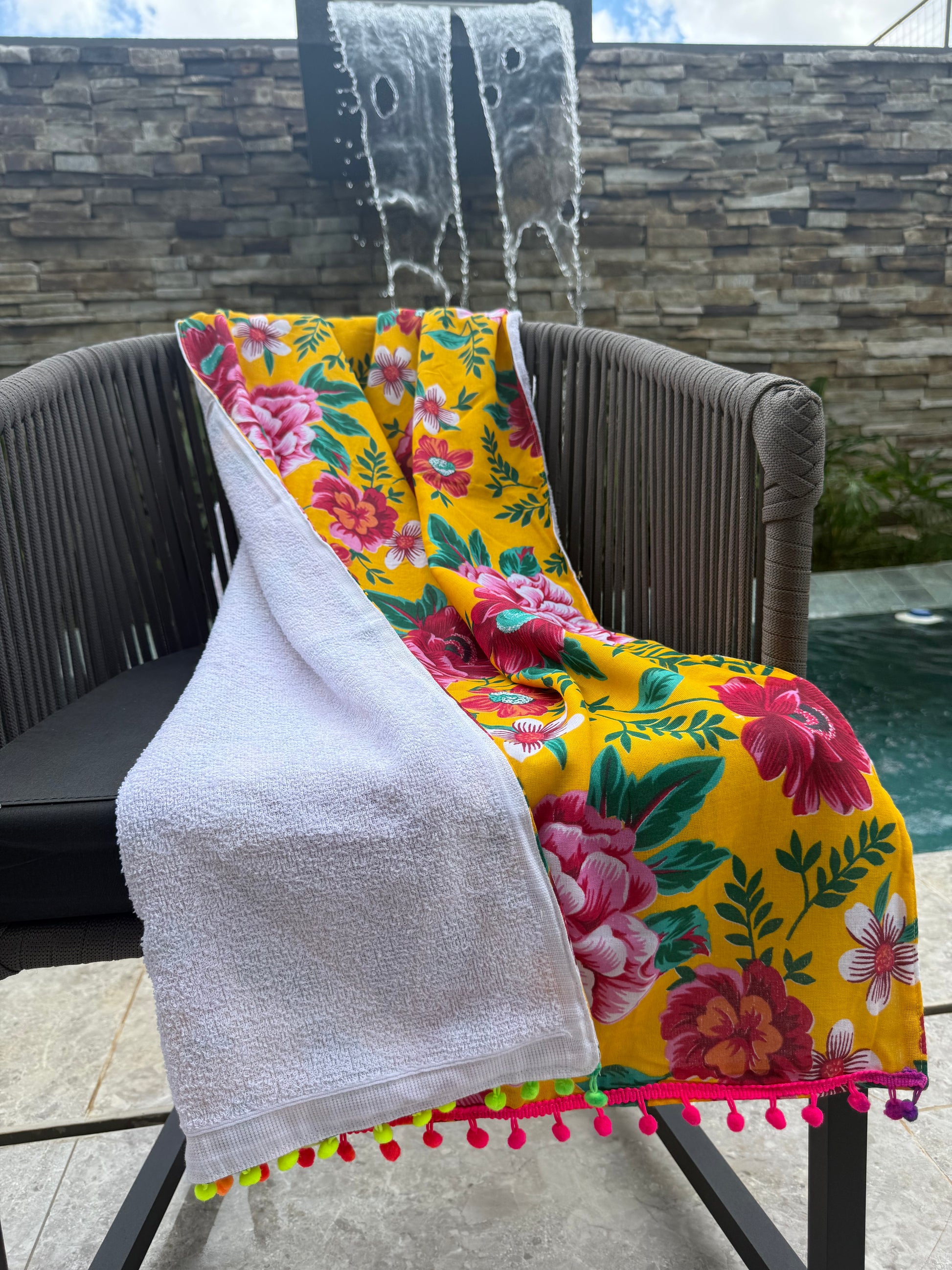 Toalha Canga Dupla Face com Chita Amarela com Toalha Branca