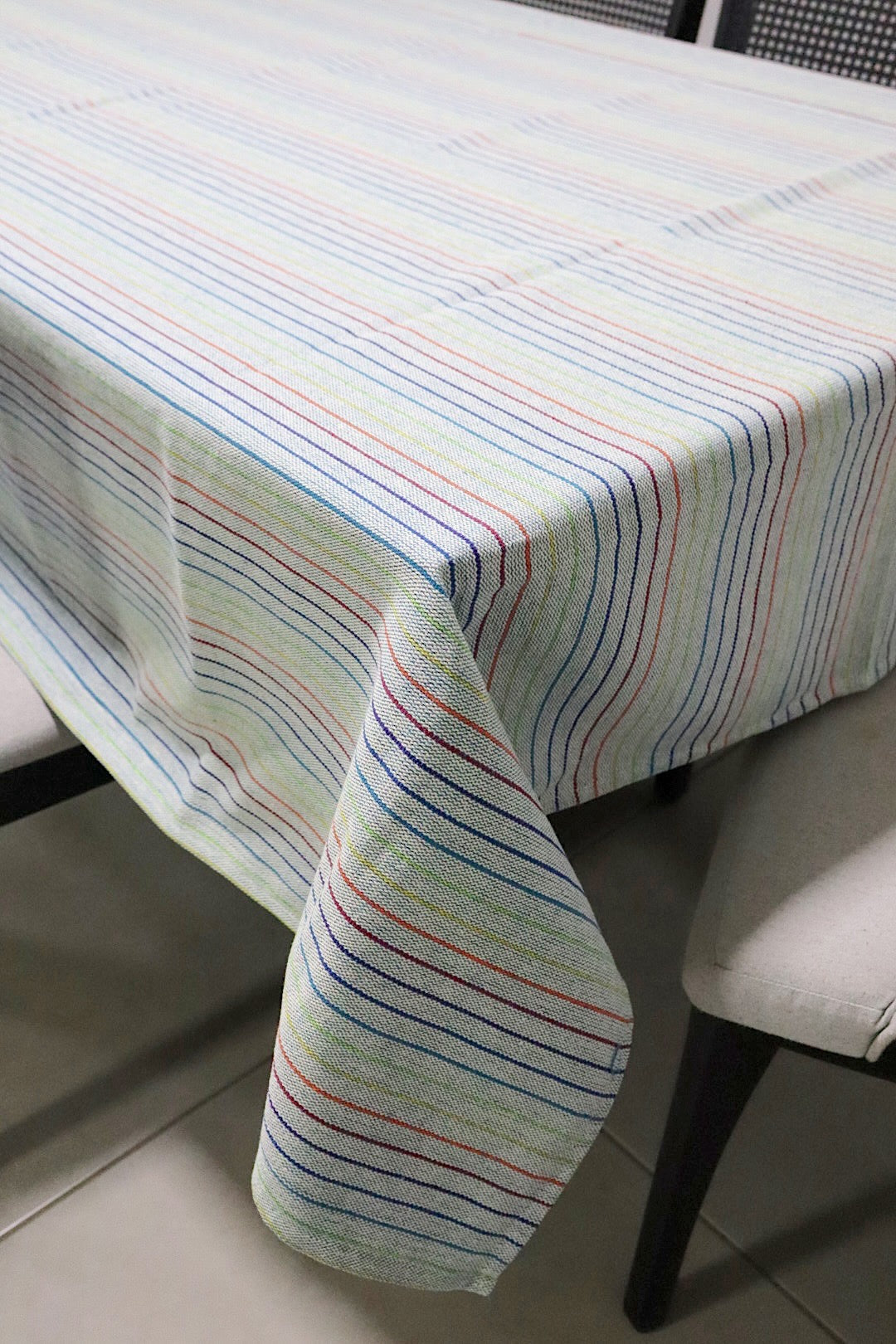 Toalha de Mesa Algodão Arco Íris Listra Fina Mesclada 1,5mx2,2m