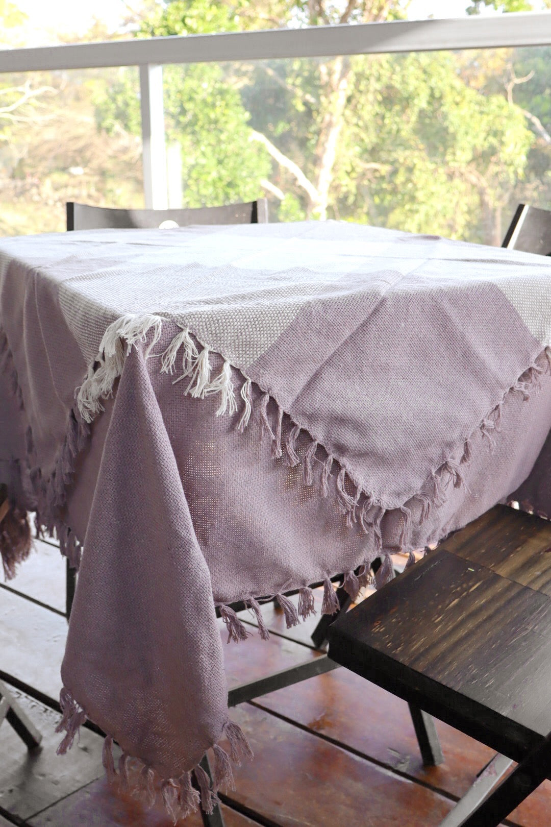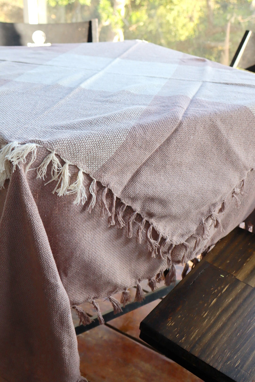 Toalha de Mesa Cobre Lanche com Duas Peças: Lisa Branca e Xadrez Café com Leite